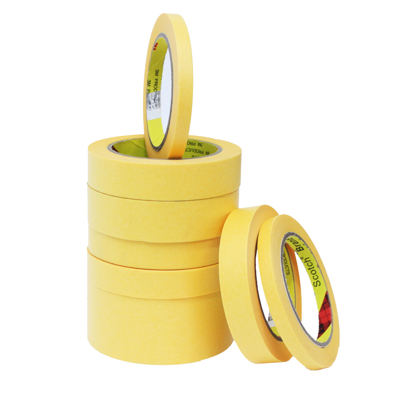 原装3M美纹纸胶带244和纸黄色耐高温胶带模型遮蔽汽车喷漆无残胶