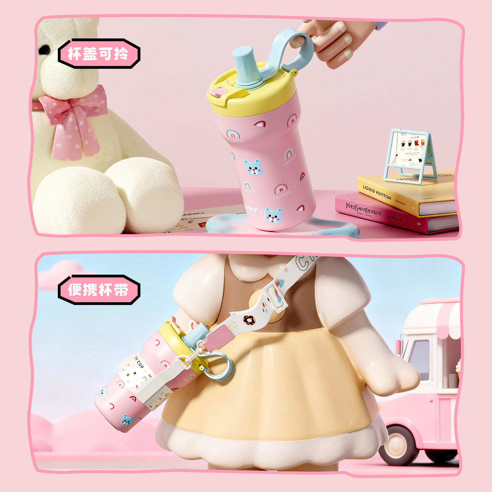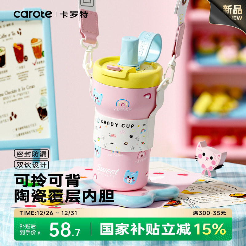卡罗特保温杯女陶瓷覆层内胆咖啡杯新款高颜值学生便携吸管水杯子