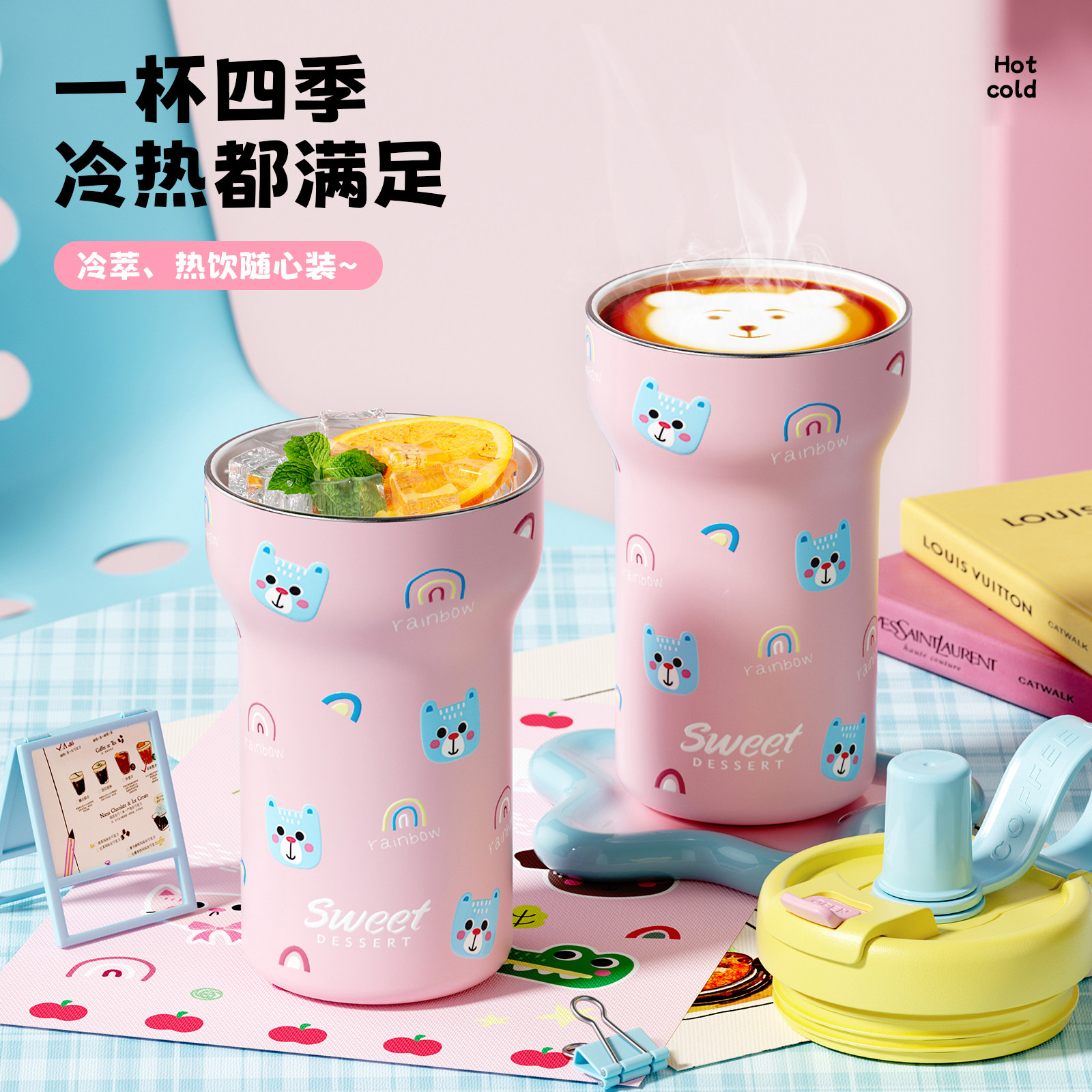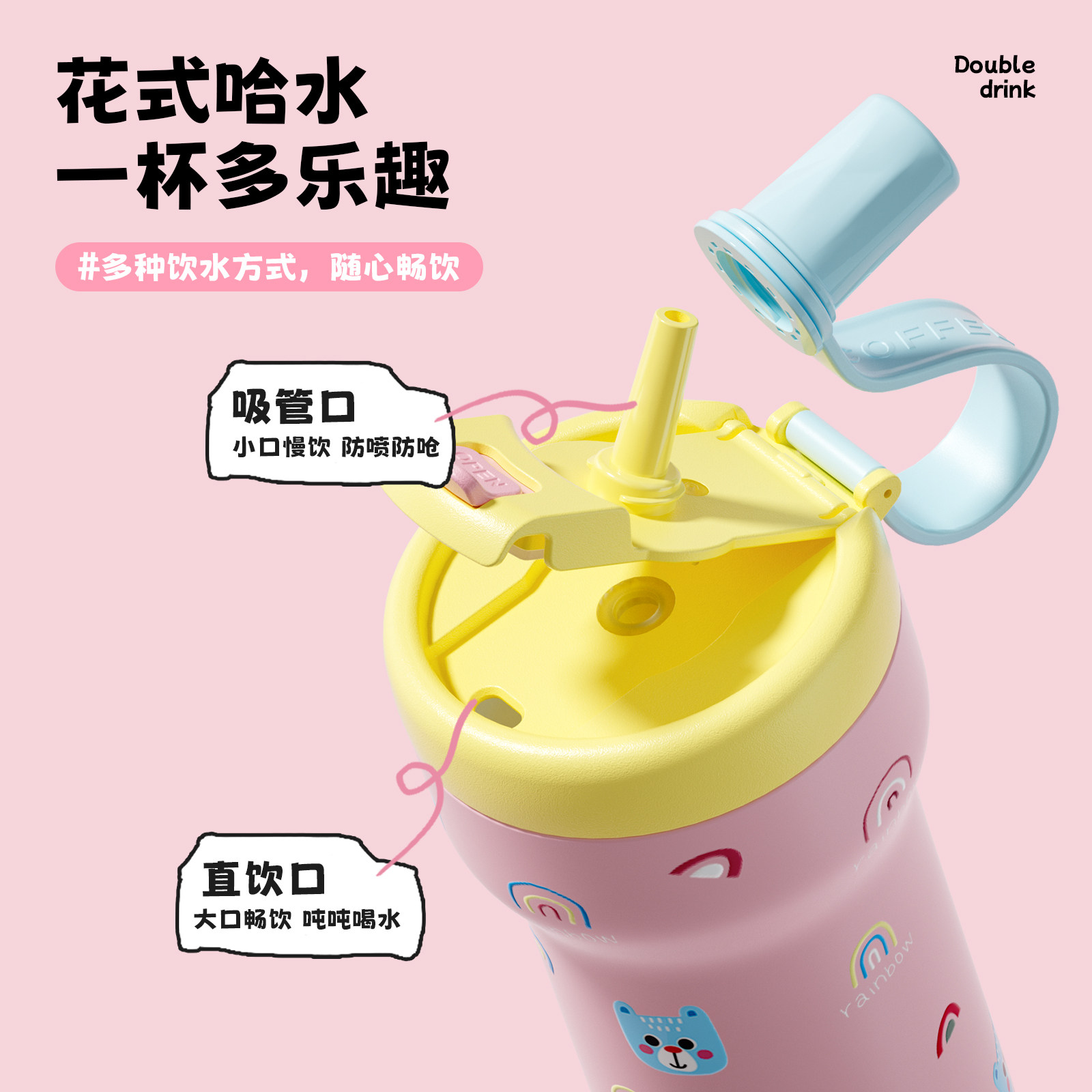杯具熊轻暖双饮保温杯高颜值情侣水杯纯色简约学生上学吸管杯新款