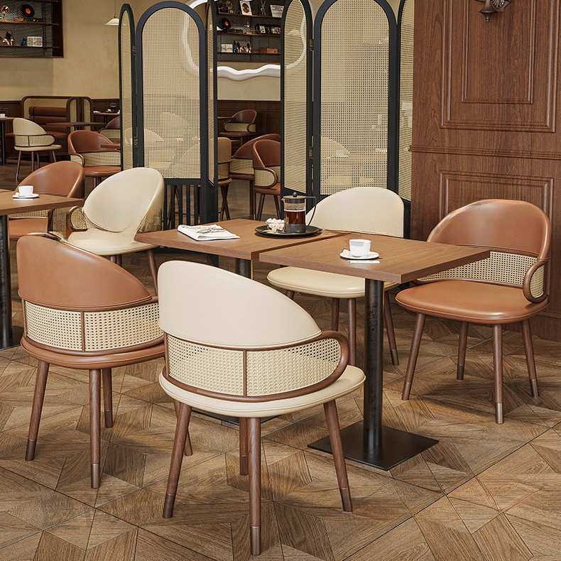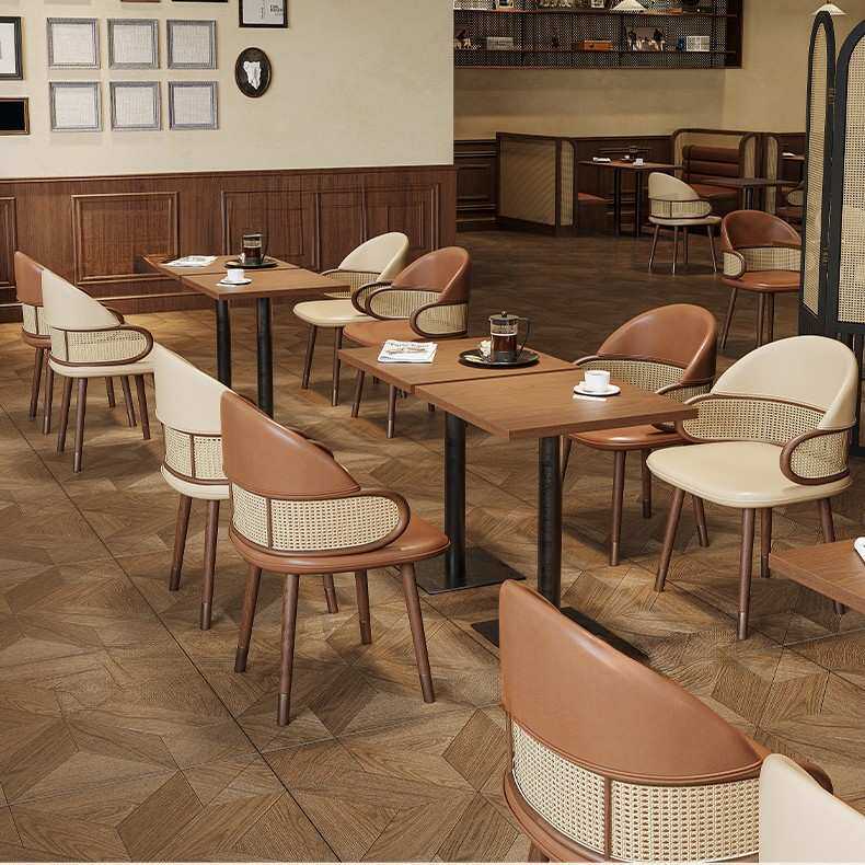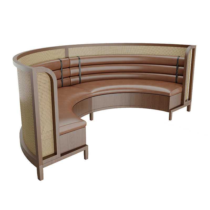 西餐厅实木卡座餐厅桌椅组合茶楼火锅店中式复古藤编半圆卡座沙发