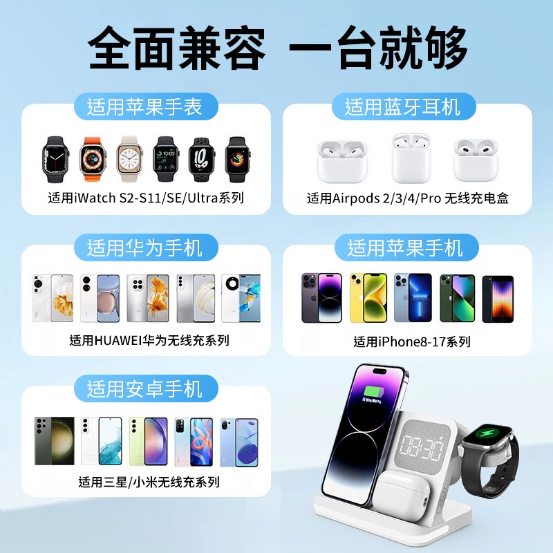 Aresh四合一无线充电器适用苹果iPhone17手机16pro支架applewatch手表磁吸iwatch快充三合一底座耳机airpods