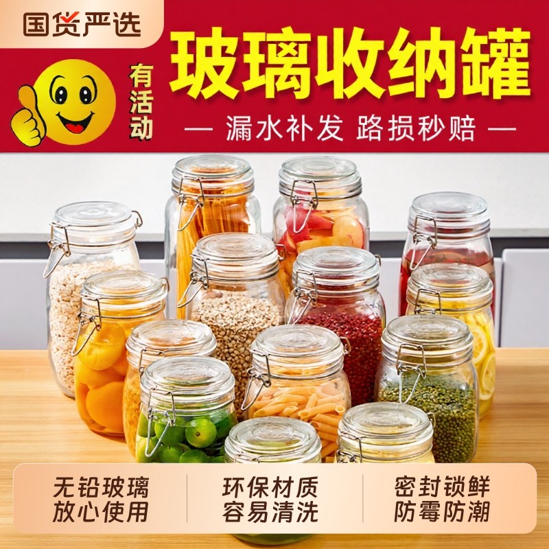 玻璃密封罐食品级瓶子家用玻璃罐玻璃瓶泡酒泡菜罐子储物罐腊八蒜