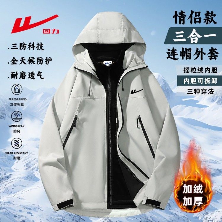 回力三合一冲锋夹克外套秋冬情侣款户外内里可拆卸款防风工装上衣