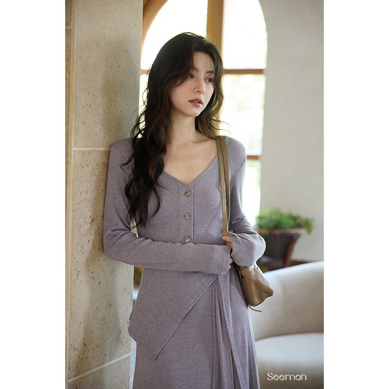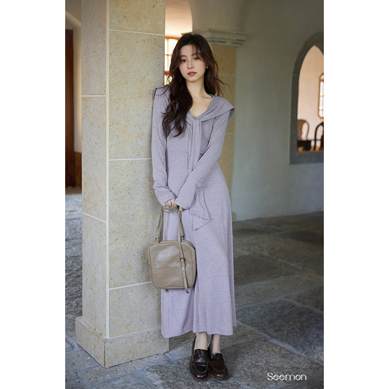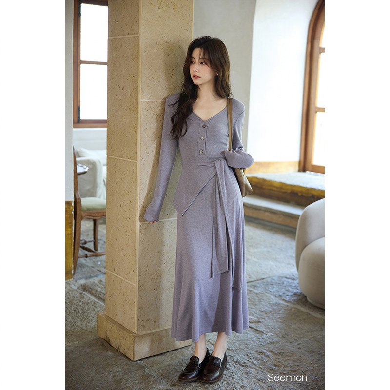 夕蒙2025新款秋韩系气质裙子小个子小众巨好看独特别致紫色连衣裙