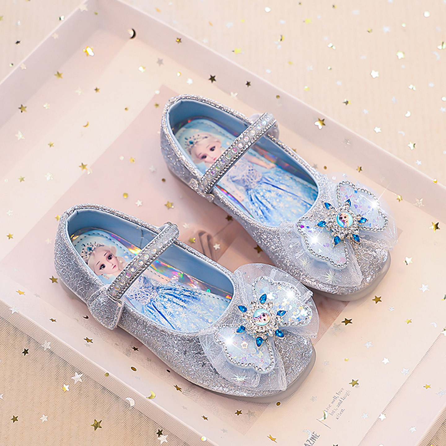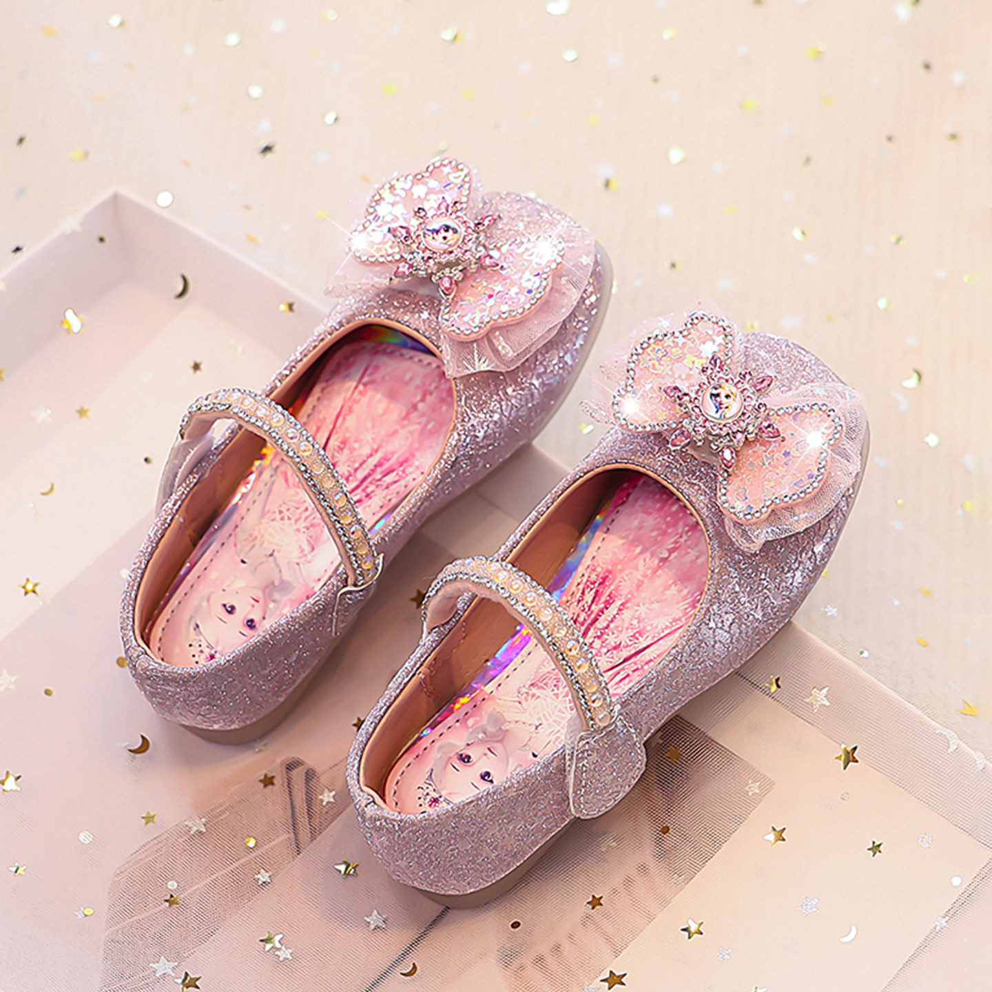 女童公主鞋艾莎水晶鞋2025春秋季新款儿童浅口皮鞋小女孩漂亮单鞋