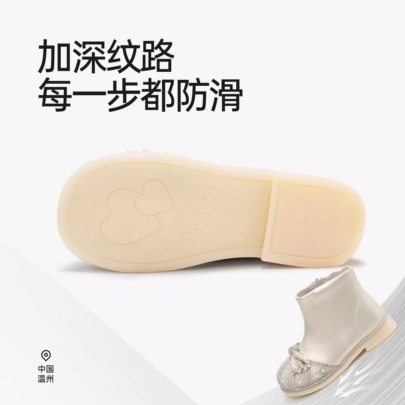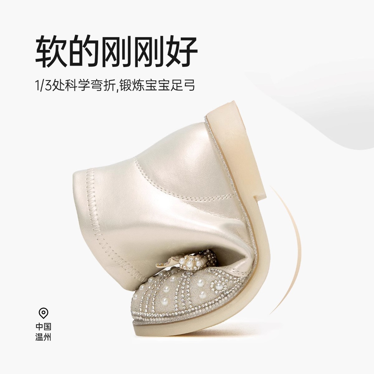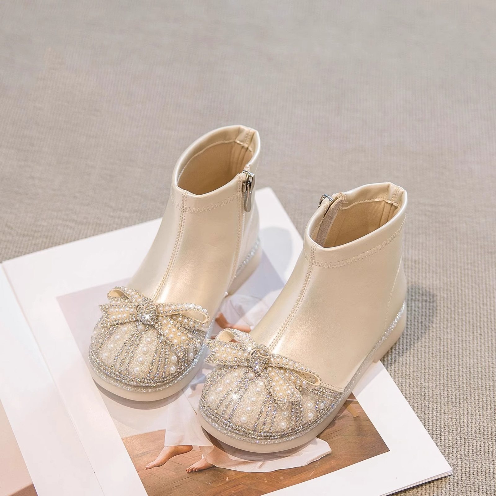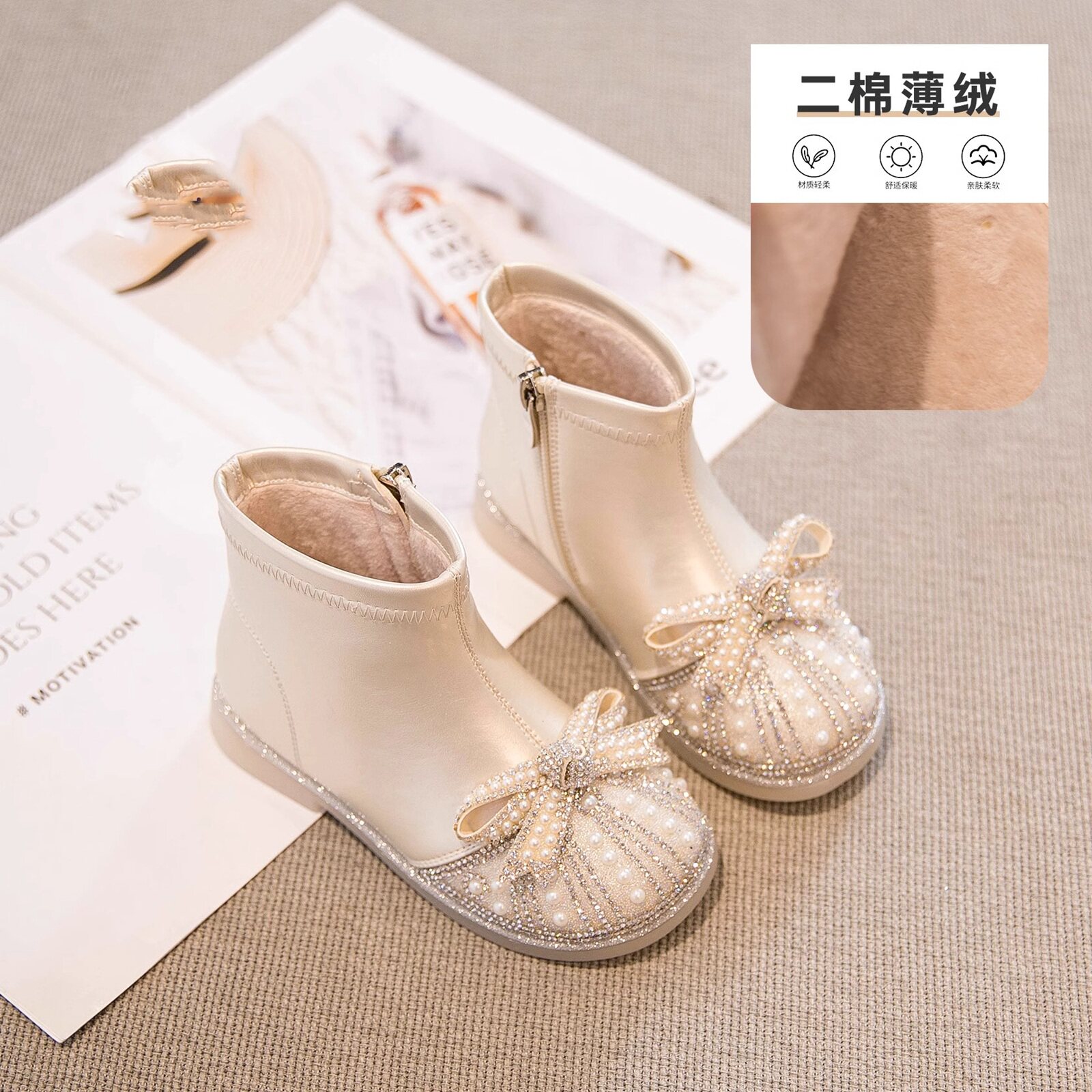 女童靴子2025冬季儿童皮鞋公主鞋秋冬宝宝小短靴加绒鞋子白色水晶