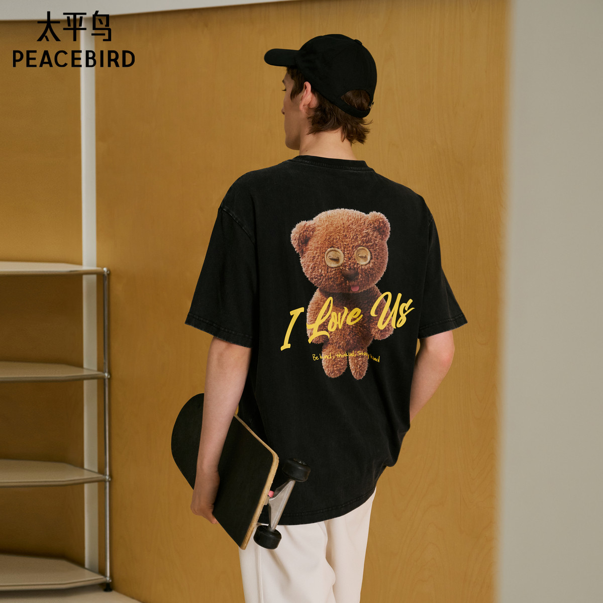 太平鸟男装夏季印花短袖T恤男士潮流宽松透气休闲体恤衫