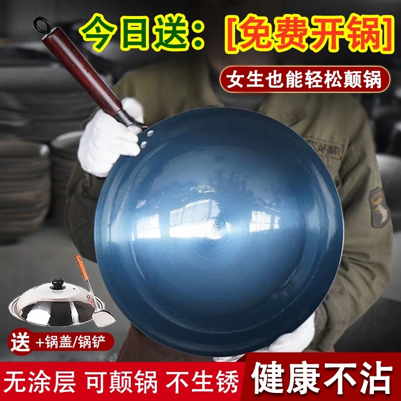 铁锅官方旗舰炒菜锅老式炒锅铁锅家用不粘锅无涂层燃气灶适用
