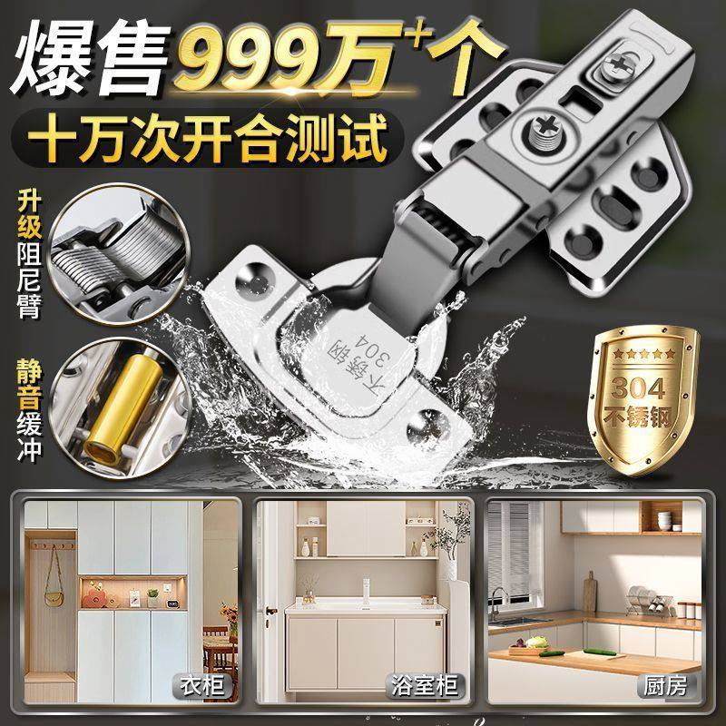 铰链304不锈钢橱柜门飞机弹簧荷叶衣柜折叠五金液压缓冲阻尼合页