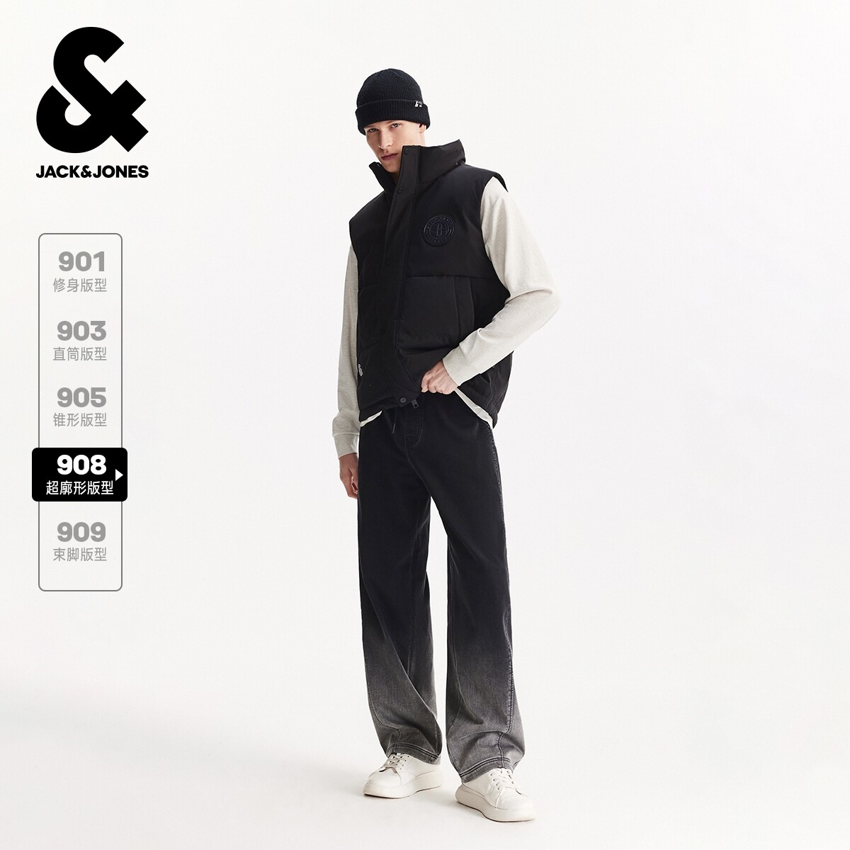 杰克琼斯春季男装牛仔裤时尚渐变裤脚超廓形舒适休闲宽松长裤裤子