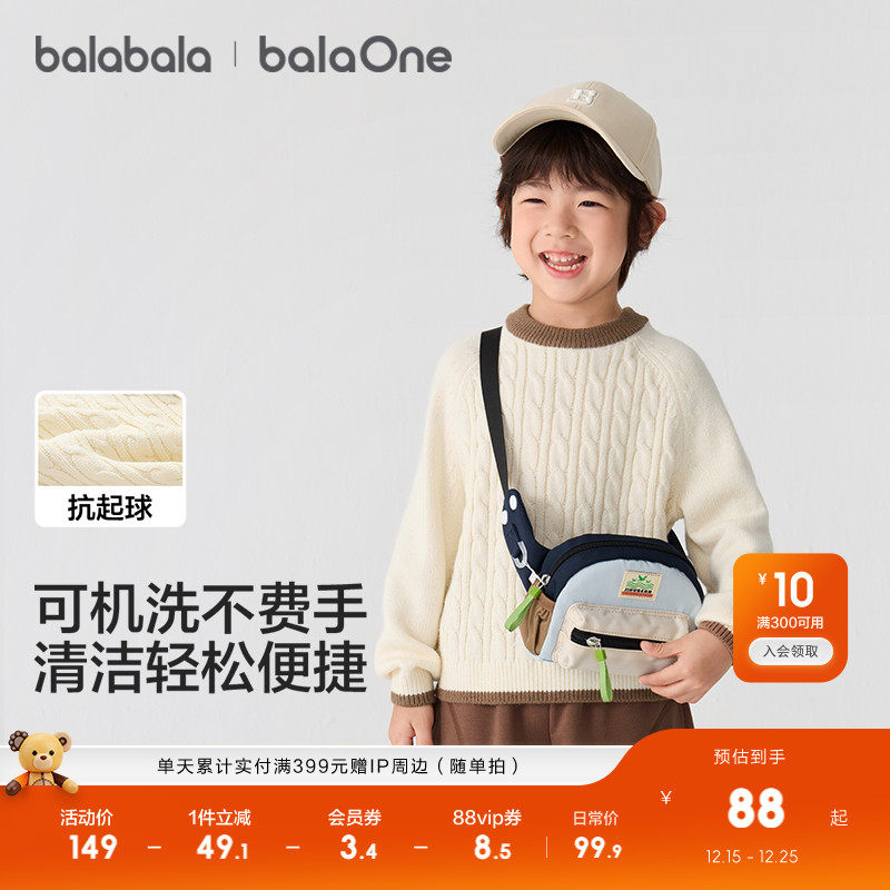 巴拉巴拉balaOne童装儿童毛衫男童女童2025新款冬装毛衣亲子装潮