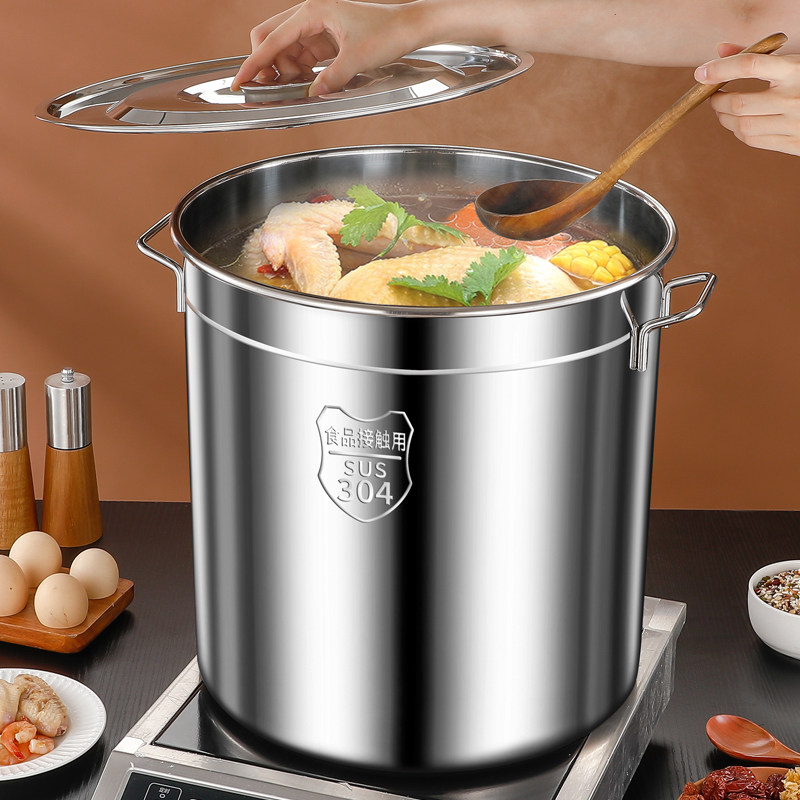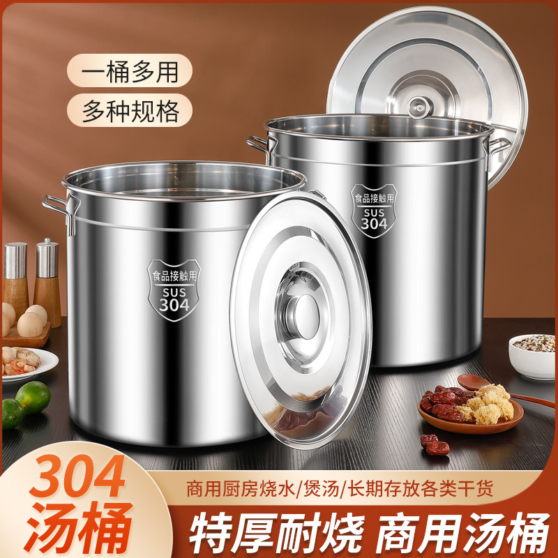 不锈钢桶304带盖商用汤桶卤桶油桶炖锅大容量加厚家用汤锅不锈钢