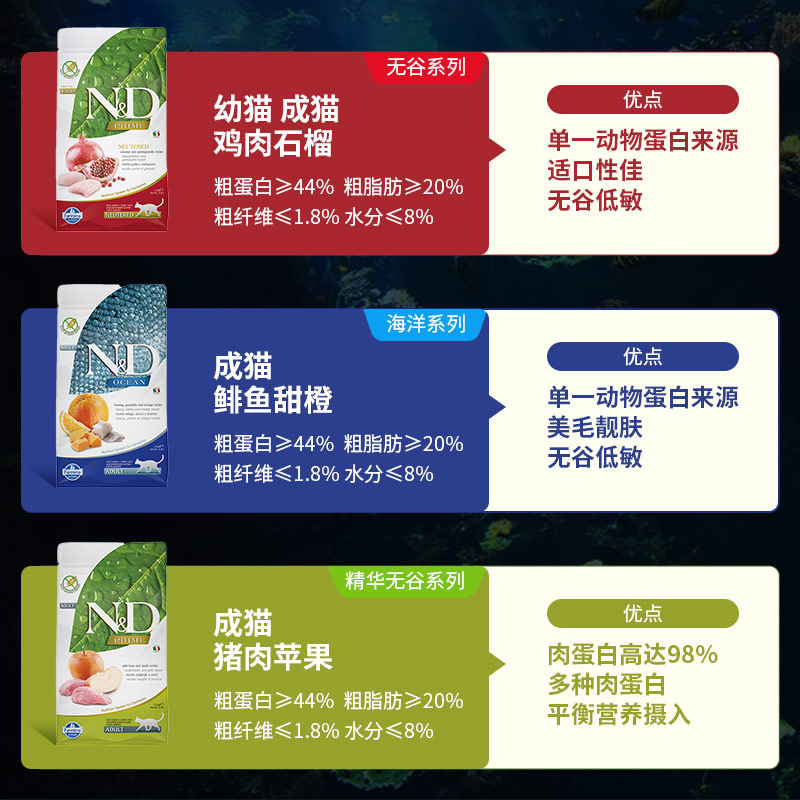 法米娜猫粮Farmina法明娜成猫幼猫粮鸡肉石榴鲱鱼甜橙苹果猪肉5kg