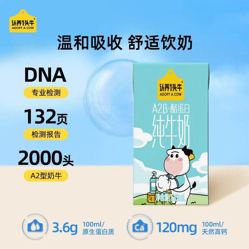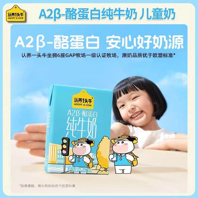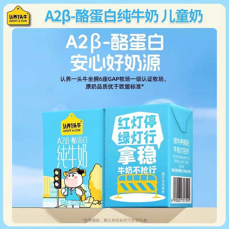 认养一头牛A2β-酪蛋白纯牛奶125ml*12盒整箱学生营养奶9月产常温