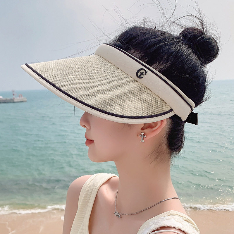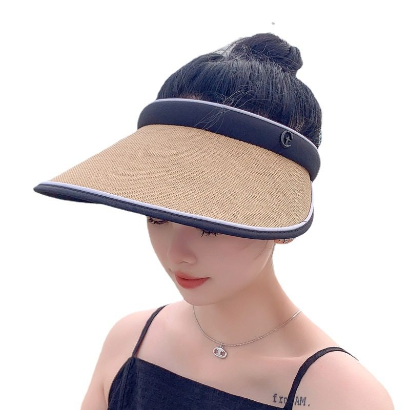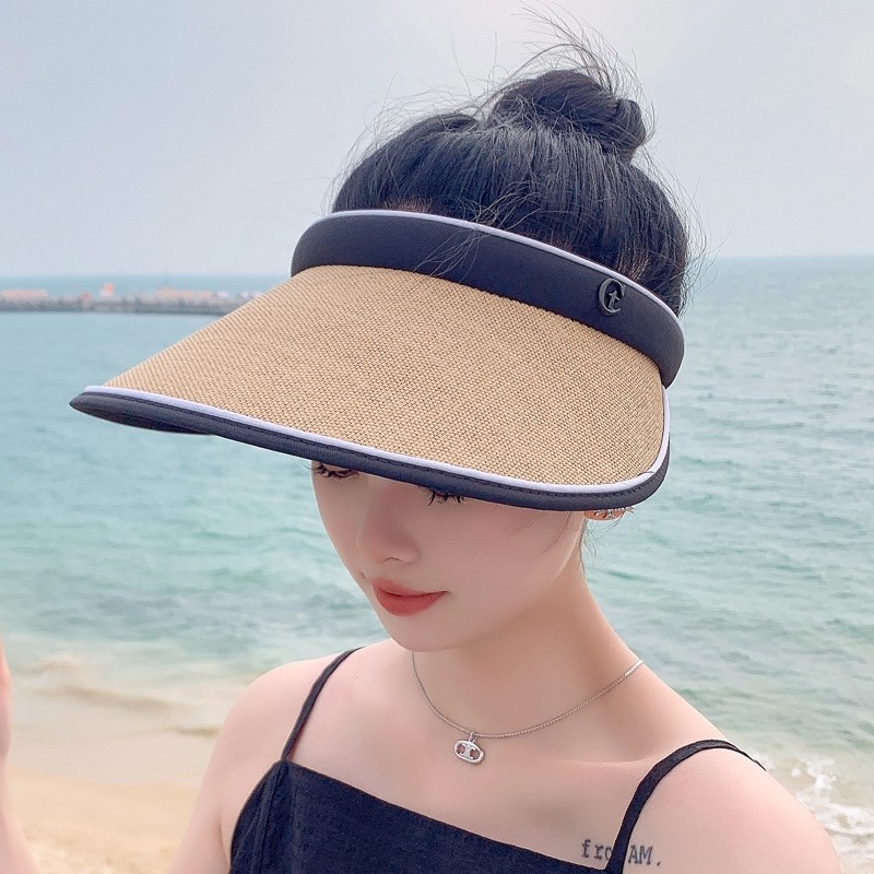 【新品】韩版ins草编鸭舌空顶帽子女春夏沙滩度假防晒遮阳无顶发