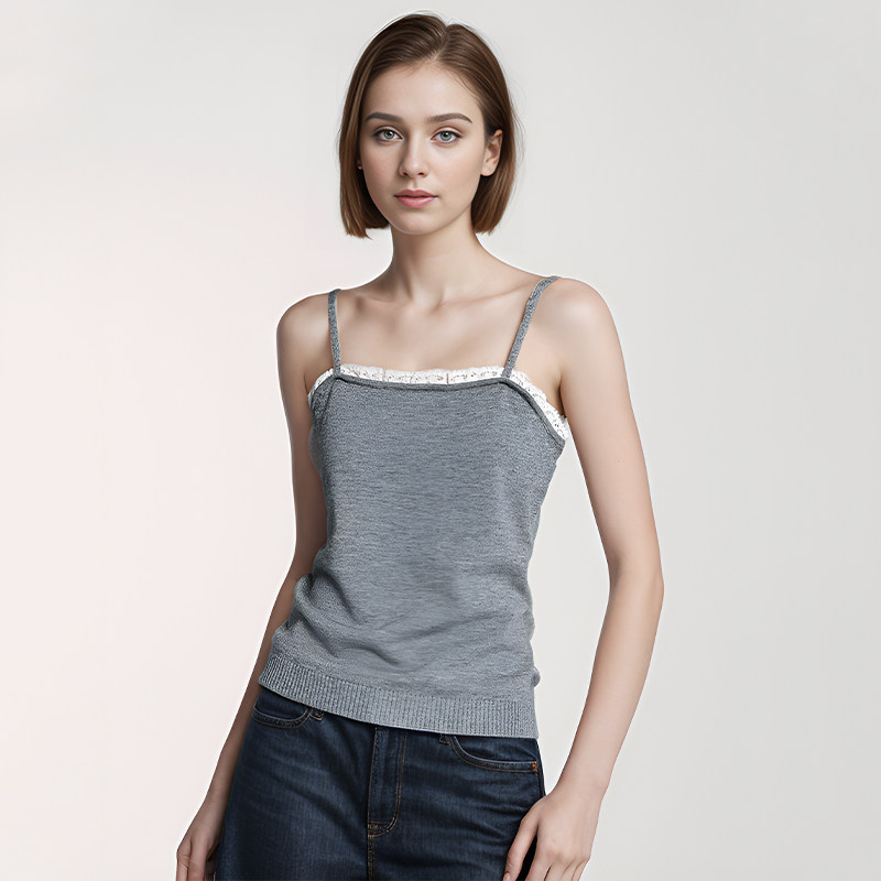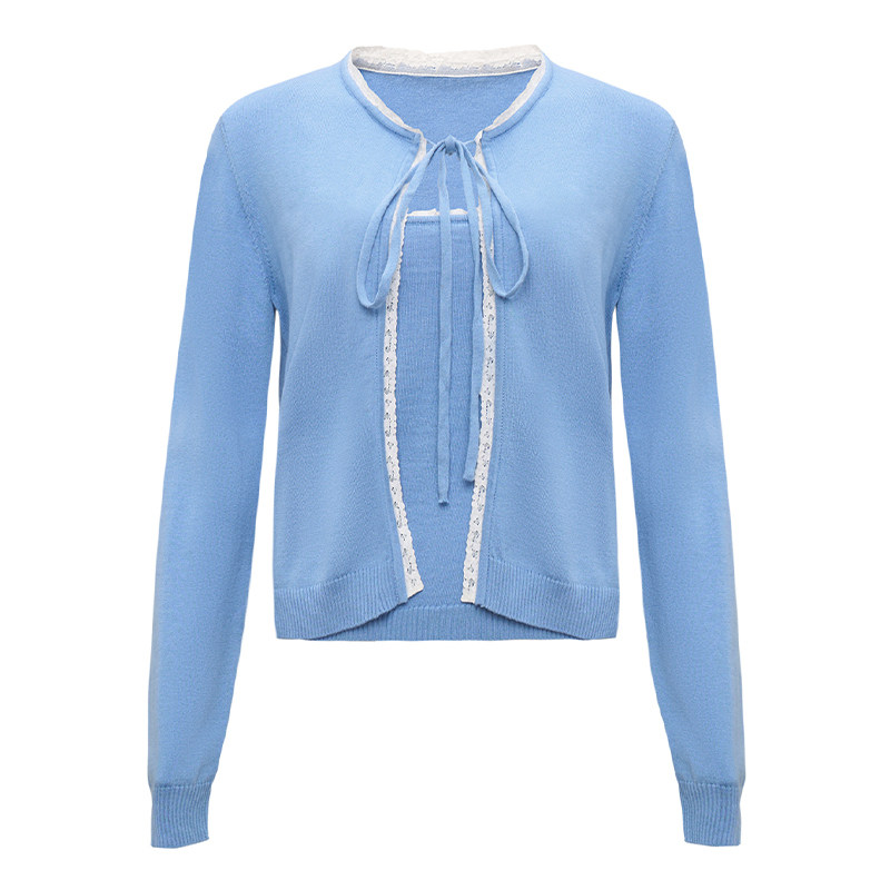 Petit Bari 重工蕾丝花边系带针织吊带开衫