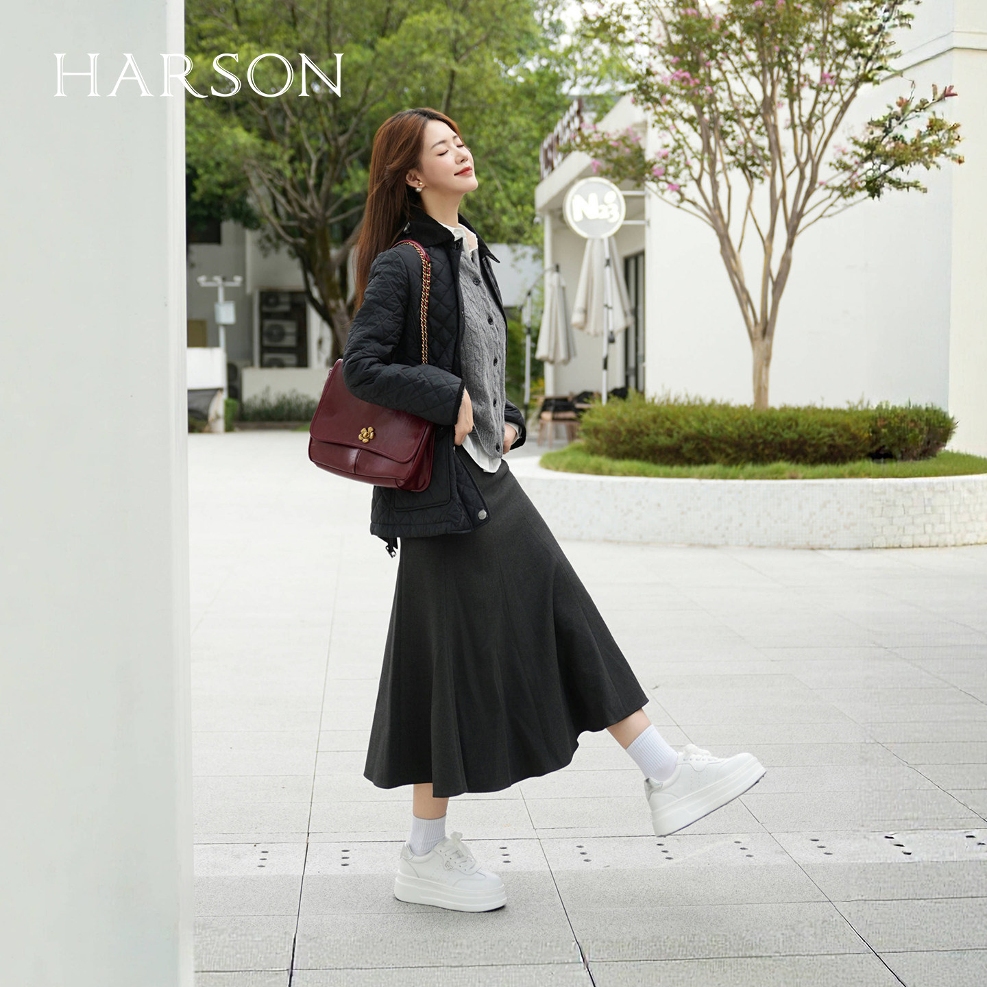 哈森/HARSON【悦动活力】25秋新款松糕厚底小白鞋运动休闲板鞋
