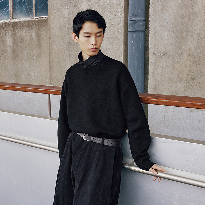 LR MADE 25AW 异形立翻双层领 保暖羊毛 长袖打底高领毛衣针织衫