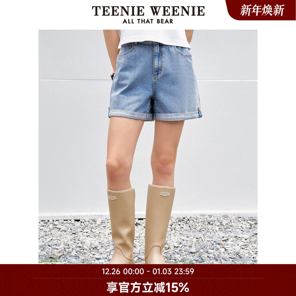 TeenieWeenie小熊奥莱宽松卷边裤腿刺绣基础款牛仔短裤裤