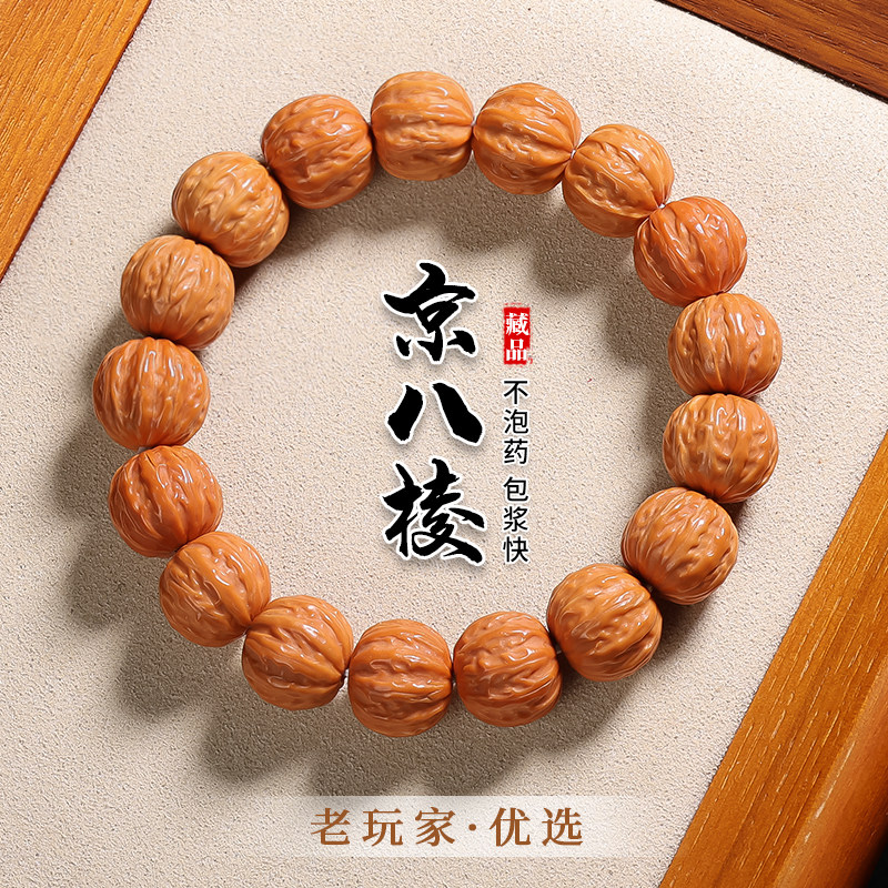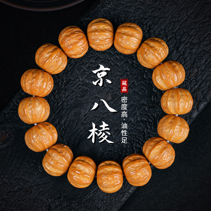 野生猴头手串男款雕刻粗筋京八棱矮桩正圆核桃文玩单圈佛珠女包浆
