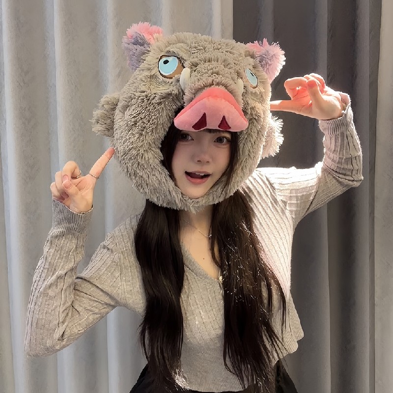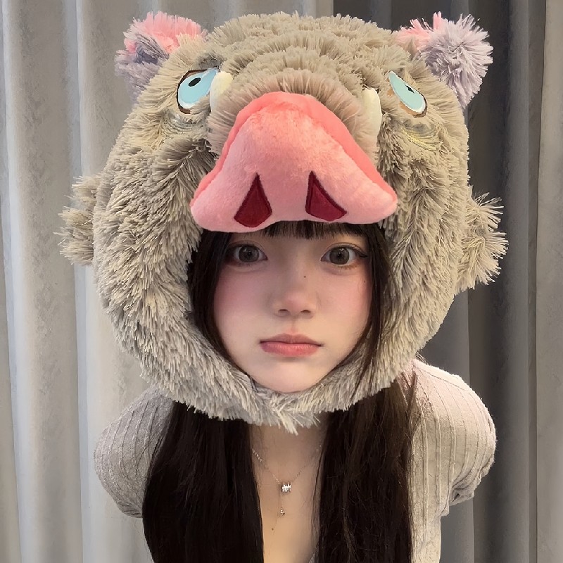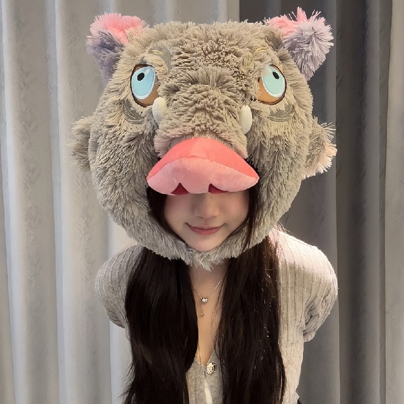 鬼灭之刃周边伊之助头套帽子嘴平猪猪连帽U型颈枕卡通动漫午睡枕