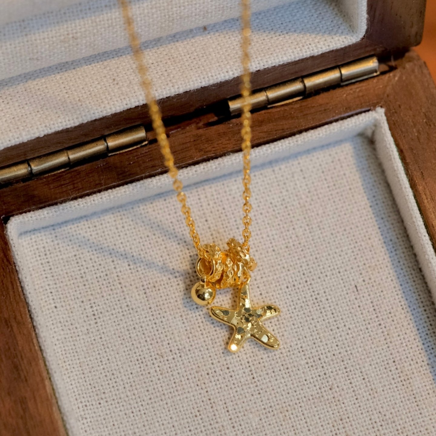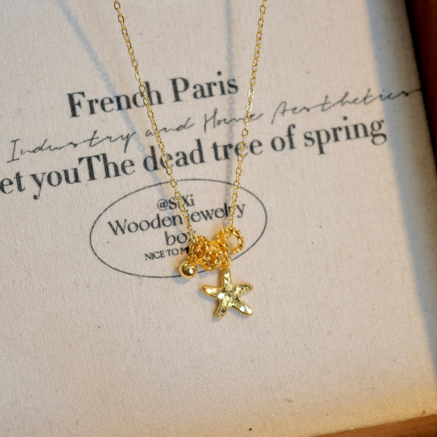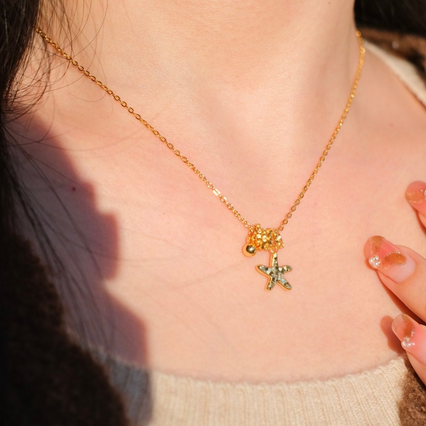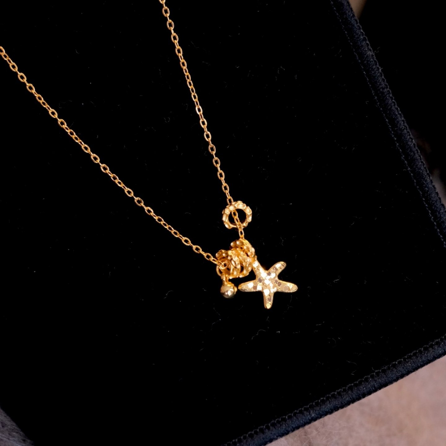 《碎金海星》轻奢气质沙金爆闪碎冰冰星星跑环转运珠项链锁骨链女
