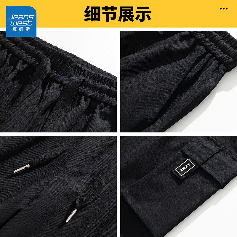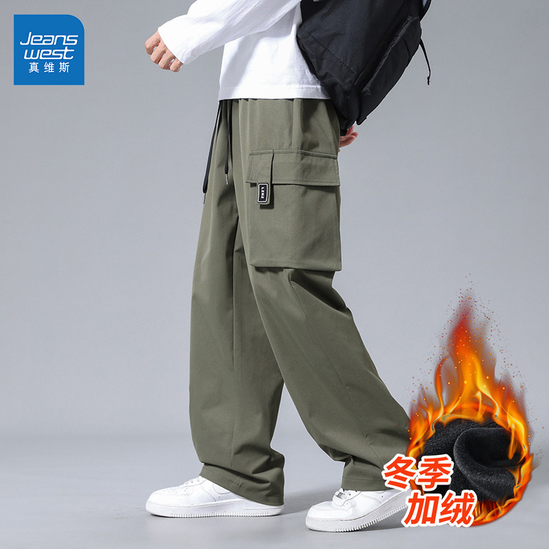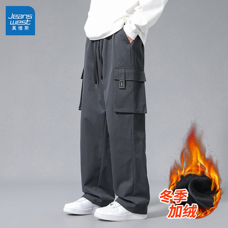 GL真维斯黑色直筒休闲裤男2025新款冬季加绒加厚工装裤宽松长裤子