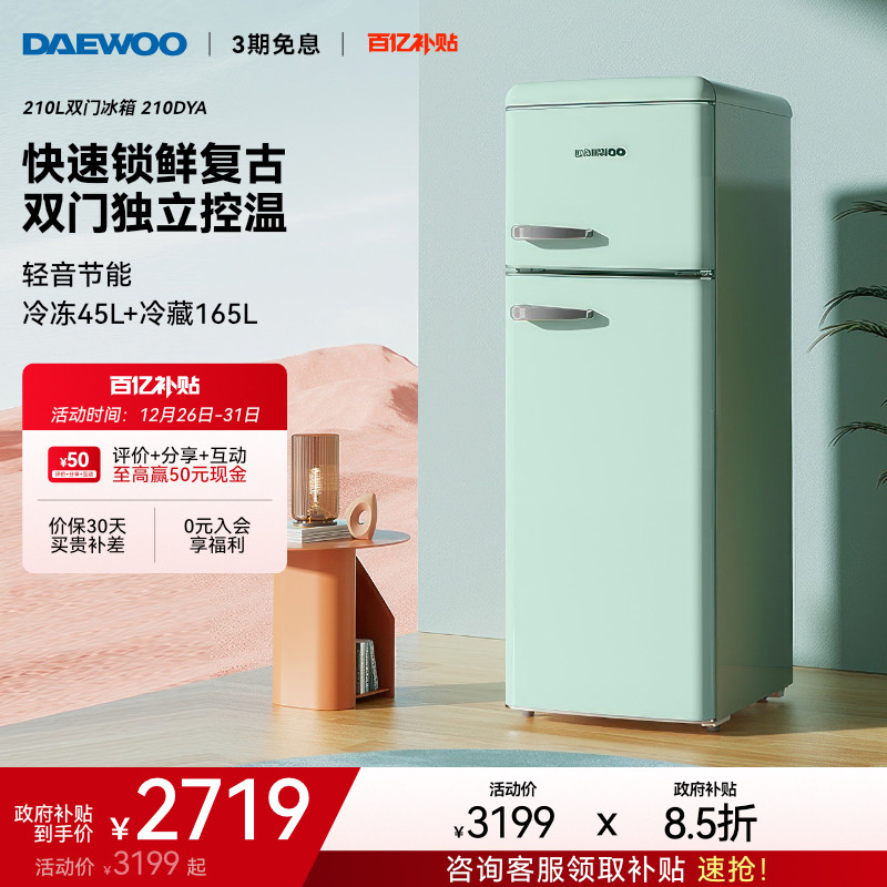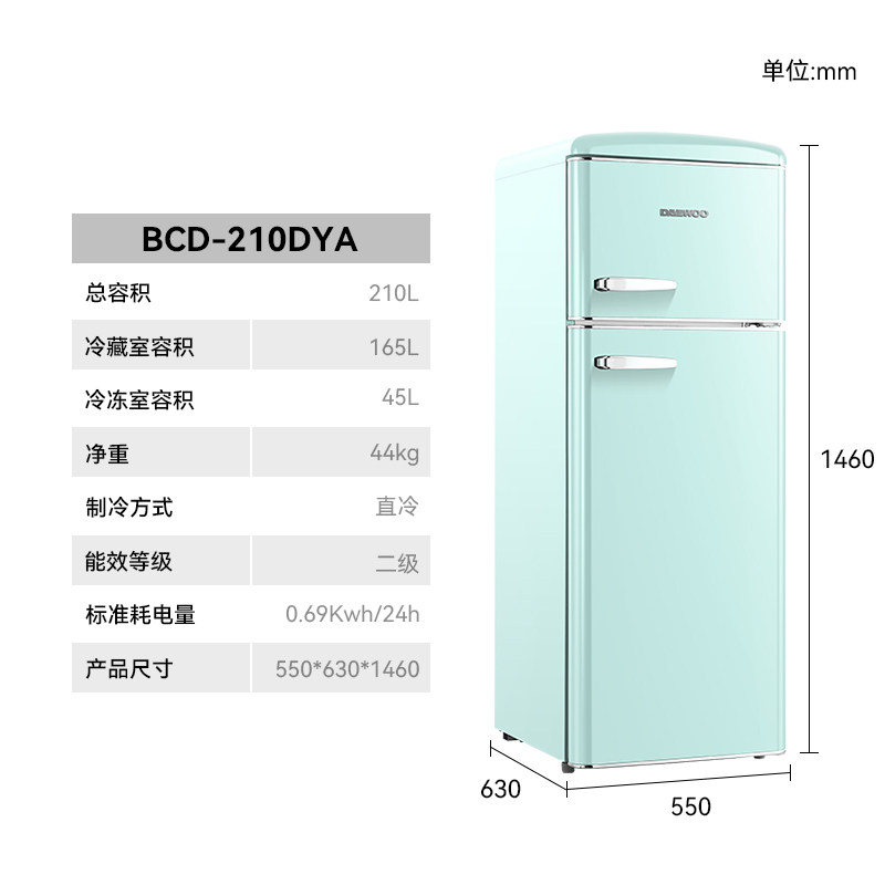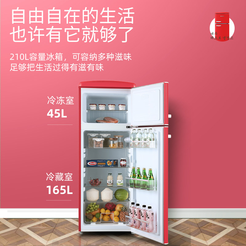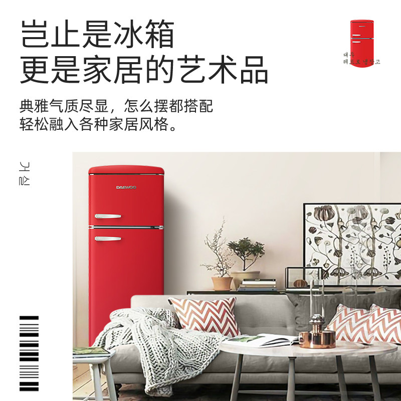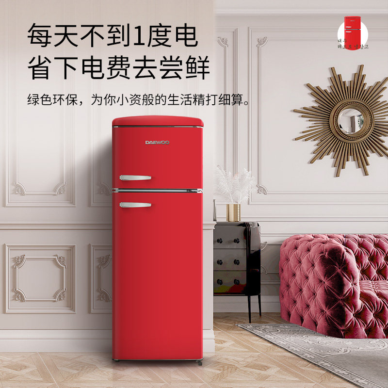 DAEWOO韩国大宇复古冰箱高颜值大容量立式双门冷藏冷冻冷柜210L