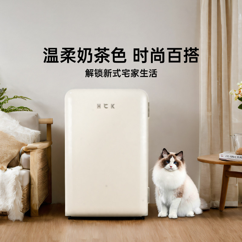 HCK哈士奇小吐司2.0复古冰箱一级能效迷你家用客厅办公室冷冻保鲜