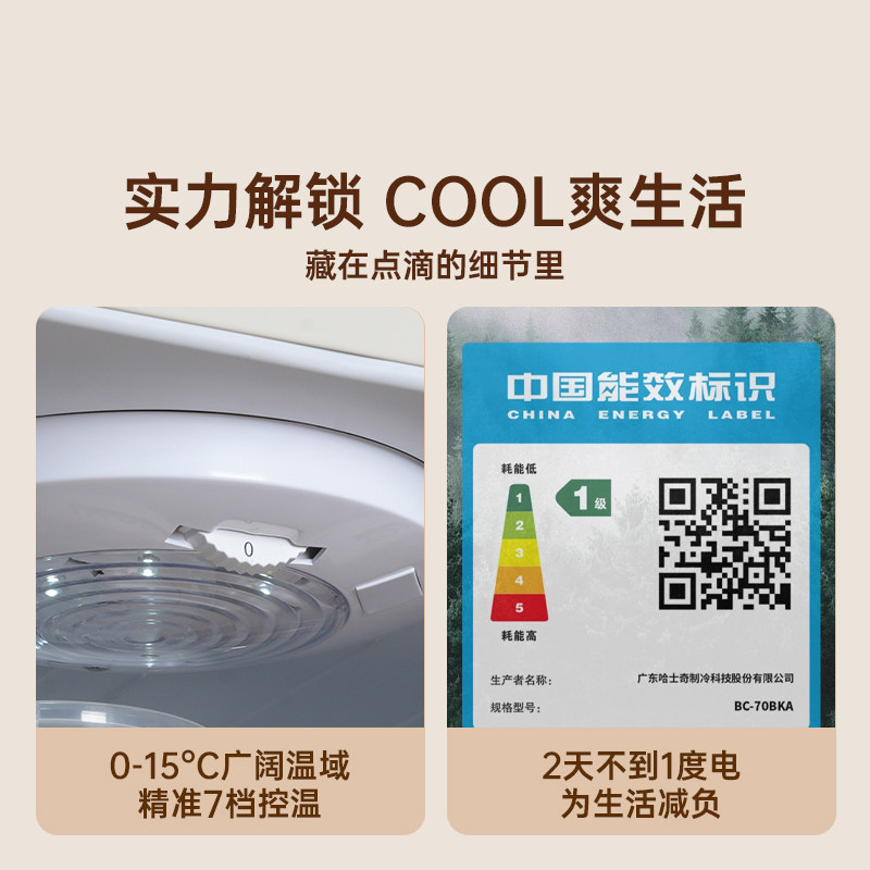 HCK哈士奇BC-70BKA冰箱迷你小型家用客厅饮料冷藏复古冰箱高颜值