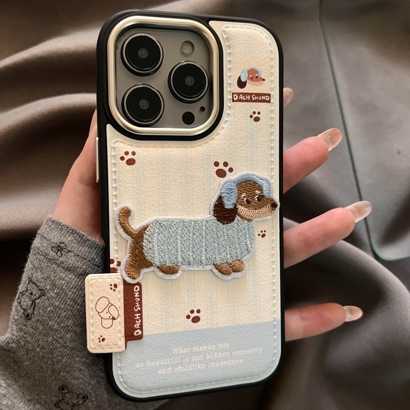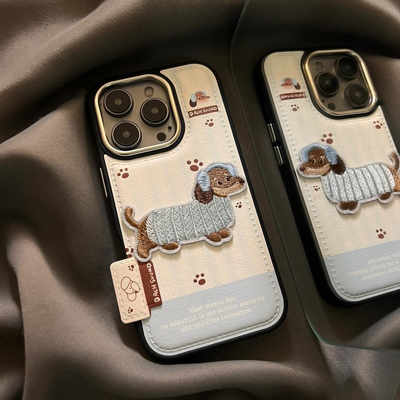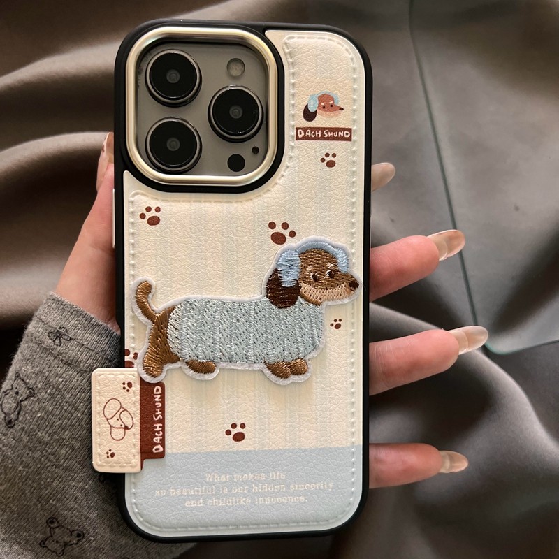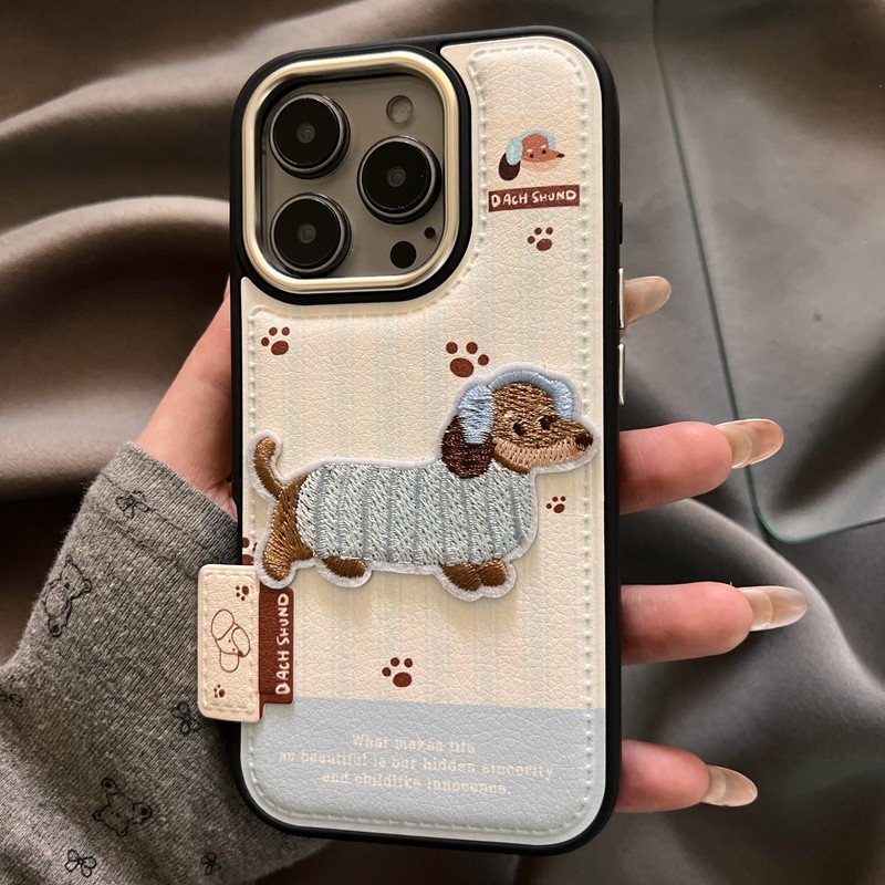 秋冬新款16proMax手机壳15pro超精致14plus卡通可爱iPhone13毛绒小狗12pro全包皮纹鼓包防摔保护套淇
