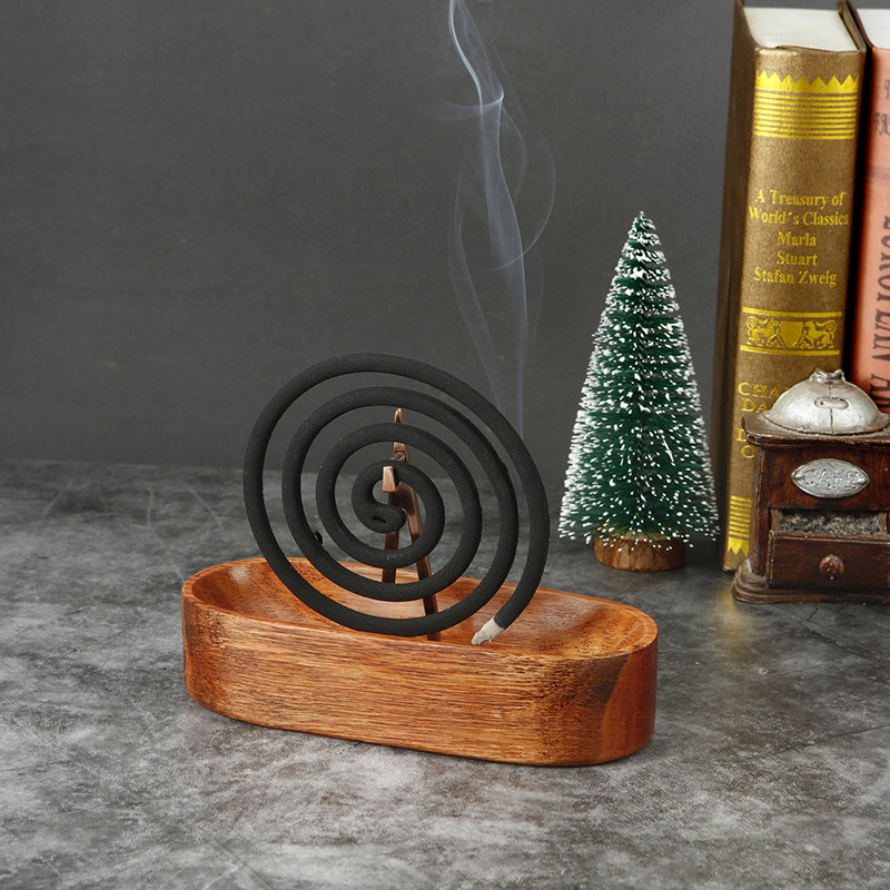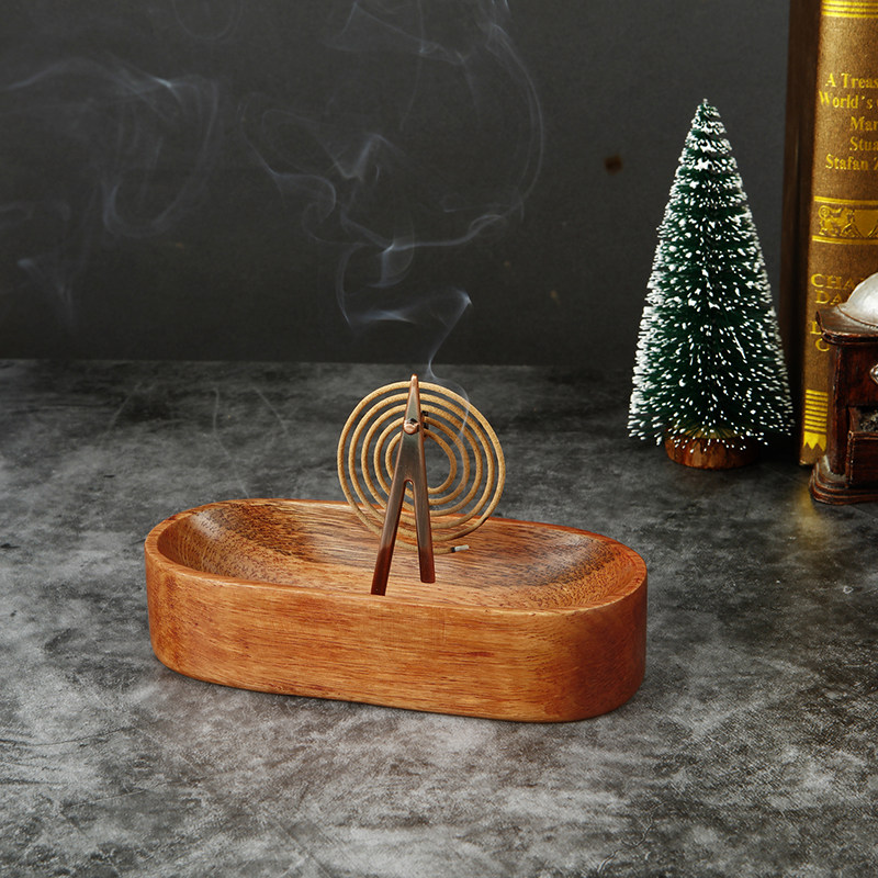 多功能日式实木船型香炉家用室内蚊香盘蚊香架盘香架香薰炉接灰盘
