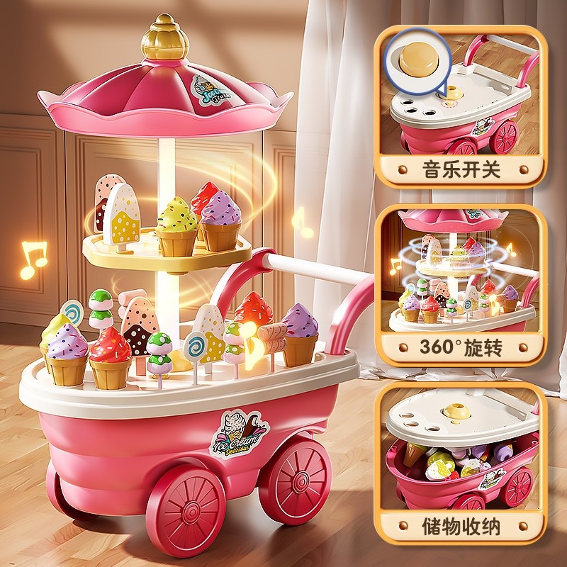儿童过家家女孩玩具宝宝冰激凌糖果雪糕冰淇淋车厨房套装生日礼物