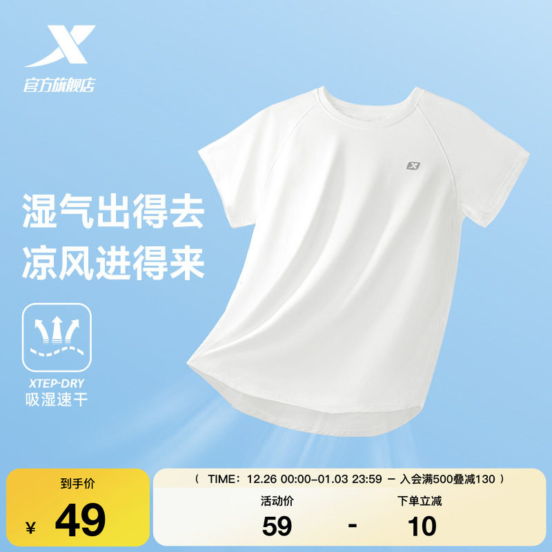 特步短袖T恤女2025年新款夏季官方休闲运动女装健身体恤速干半袖