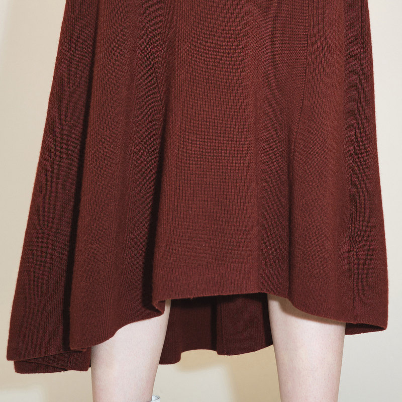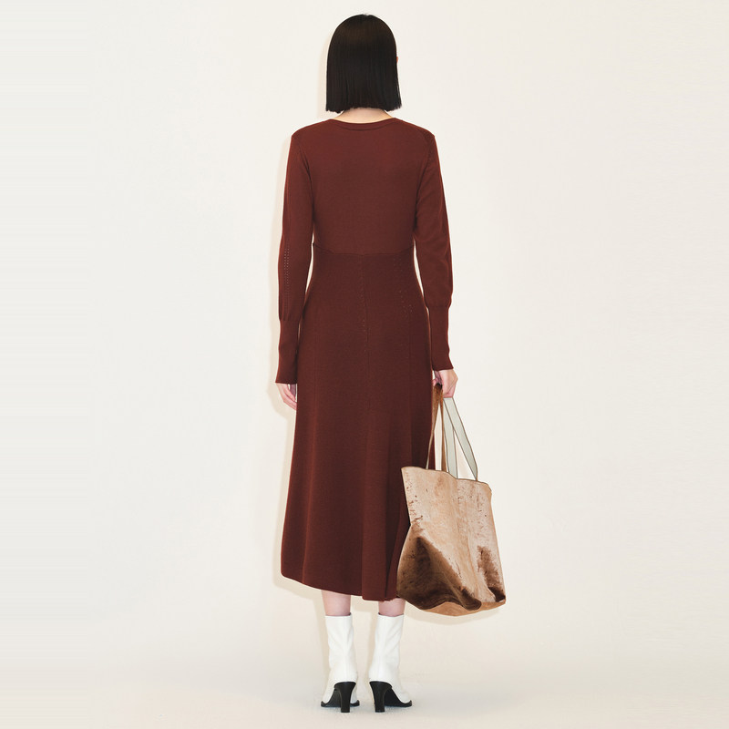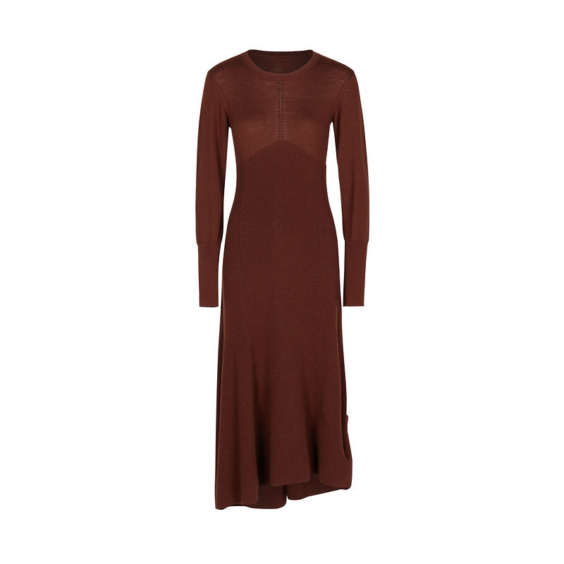LESS春季绵羊毛裙子女气质法式不规则裙摆修身连衣裙2N1G10700