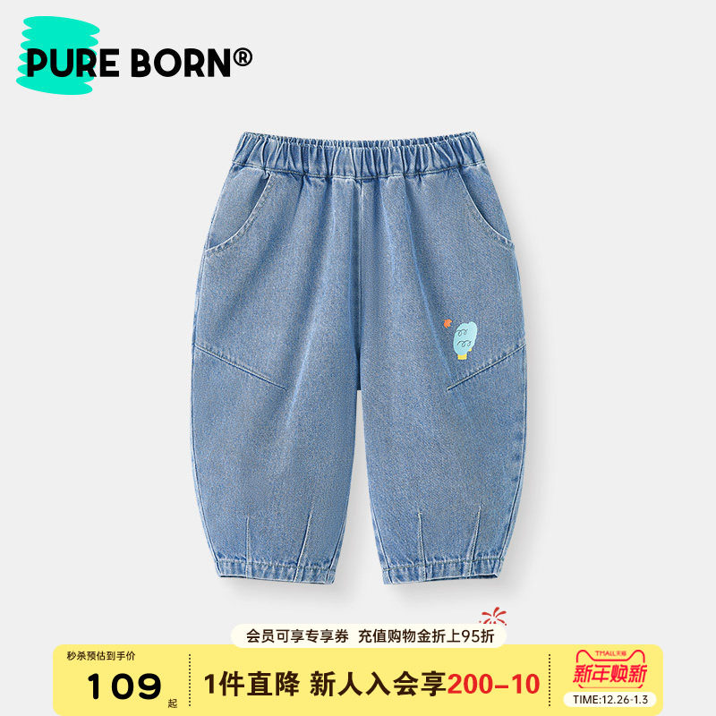 博睿恩 儿童牛仔长裤子2025春秋新款男女宝宝休闲百搭宽松裤子
