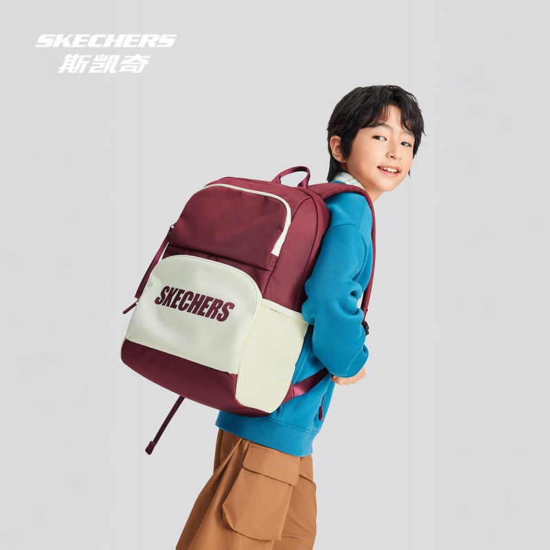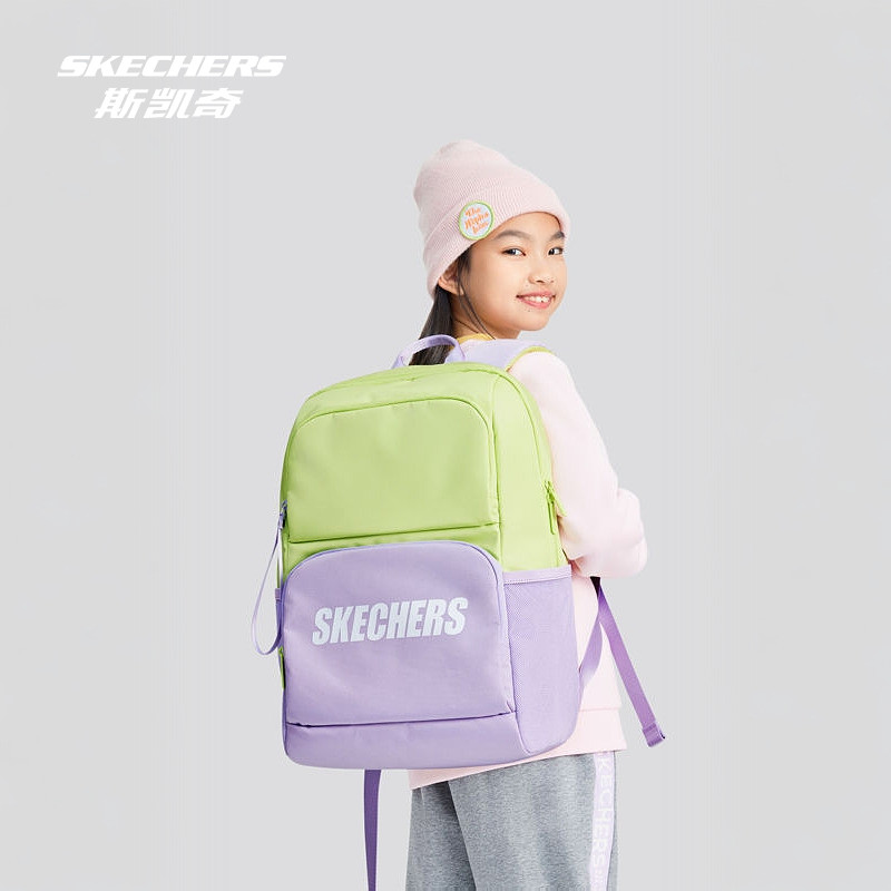 斯凯奇儿童双肩背包男女童时尚轻便大容量休闲运动风防水户外包