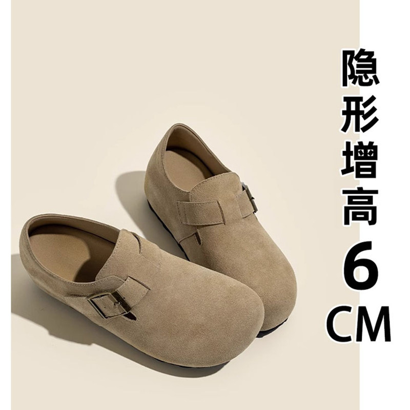 厚底内增高6cm勃肯鞋女2025秋季新款一脚蹬复古博肯单鞋豆豆乐福