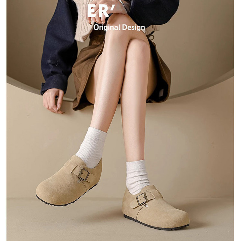 TATAFOCUS~加绒毛毛鞋韩版圆头皮带扣2025冬季新款勃肯鞋女35-28