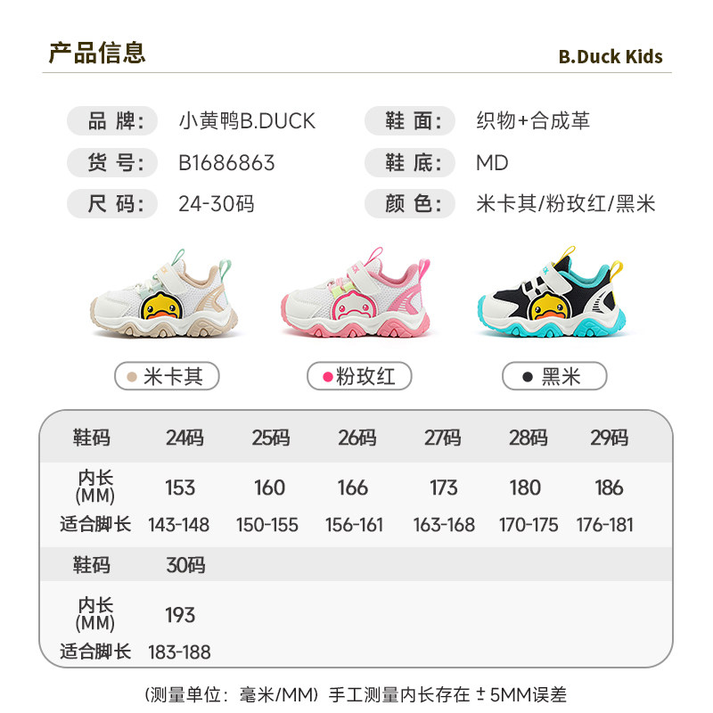 BDuck小黄鸭童鞋男童运动鞋2025春季新款女童休闲宝宝鞋软底潮牌