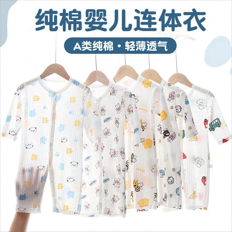 新生婴儿连体衣纯棉男女宝宝衣服包屁衣夏装睡衣薄款长袖哈衣爬服