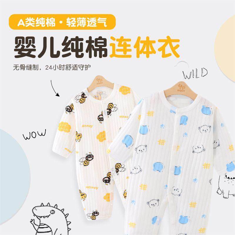 婧麒新生儿婴儿衣服秋冬夹棉满月纯棉初生宝宝秋装连体衣a类爬服
