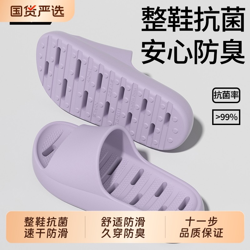 十一步抗菌浴室凉拖鞋女居家室内浴室洗澡速干防滑不臭脚情侣拖鞋