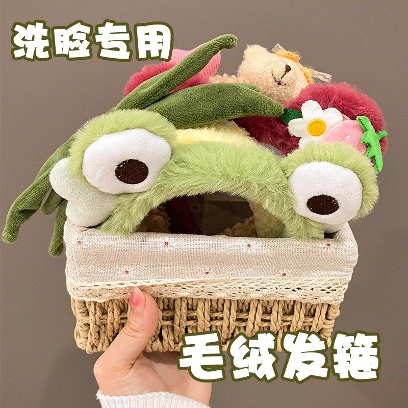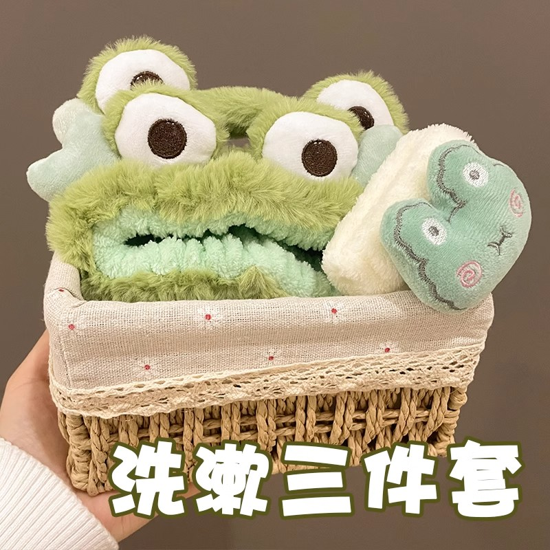 三件套可爱洗脸发箍女束发带头箍手腕带专用防滑卡通秋冬青蛙发卡