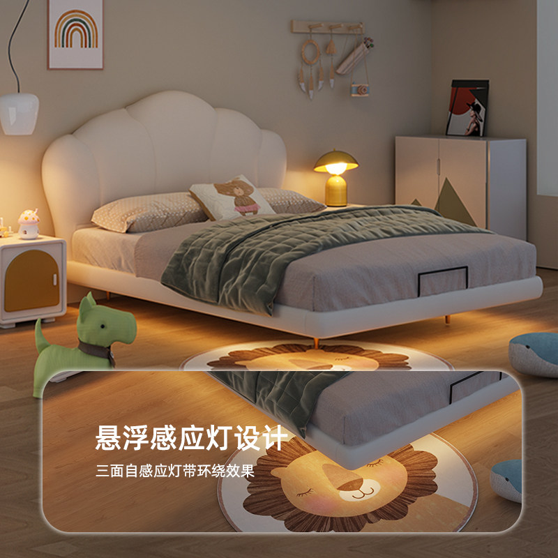 慕思儿童床悬浮床架公主卧室单人儿童房云朵床男孩女孩实木床主卧