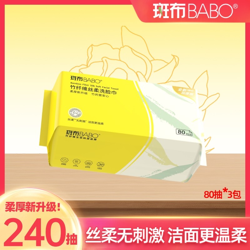 斑布竹纤维丝柔洗脸巾80抽3包一次性卸妆巾干湿两用