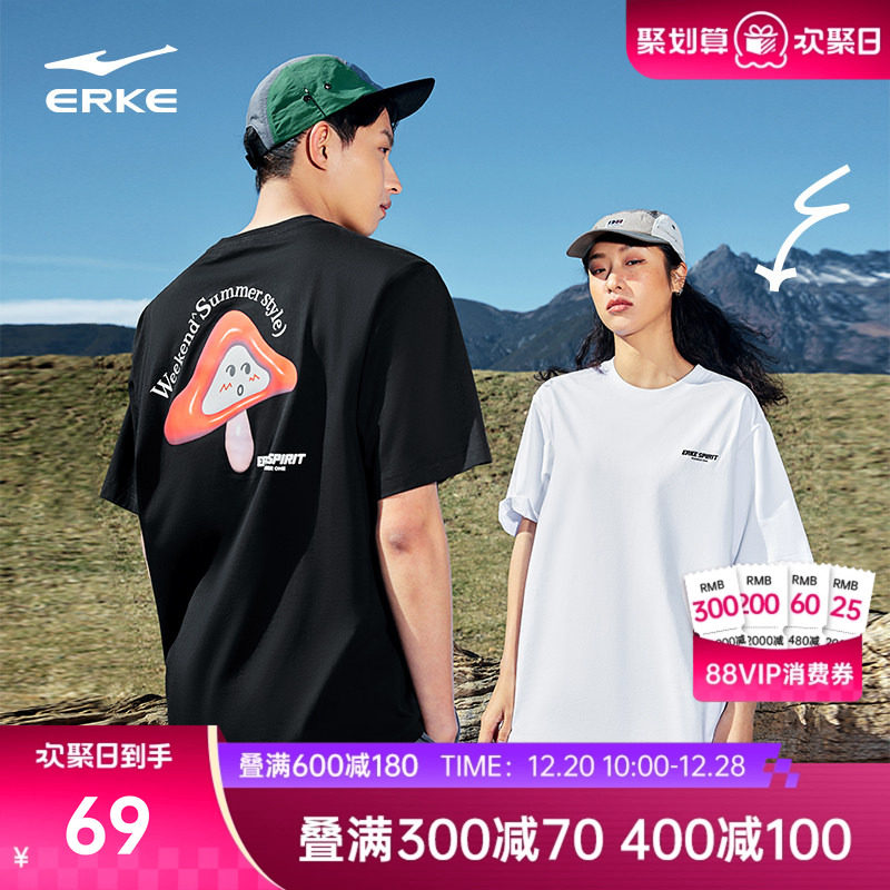 鸿星尔克短袖男夏季男士户外运动宽松t恤男女情侣款休闲棉质上衣