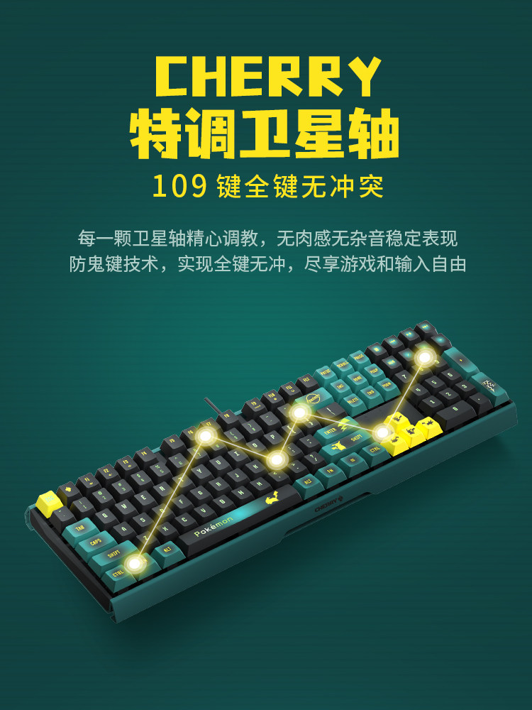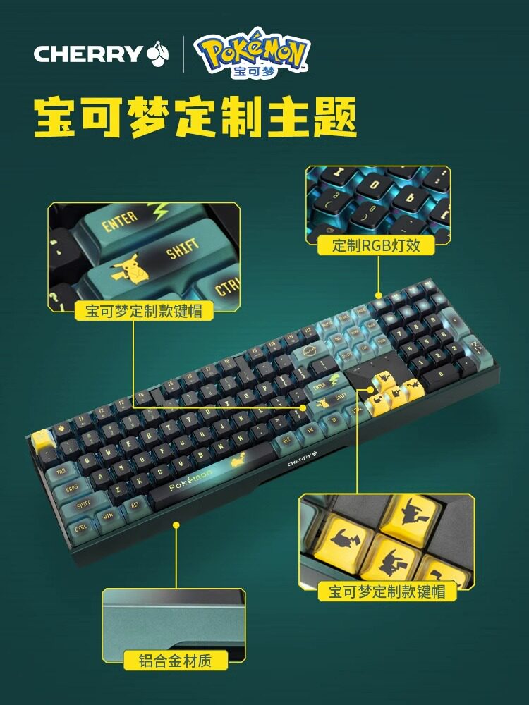 CHERRY樱桃MX3.0S宝可梦皮卡丘无线三模RGB机械键盘游戏电竞蓝牙
