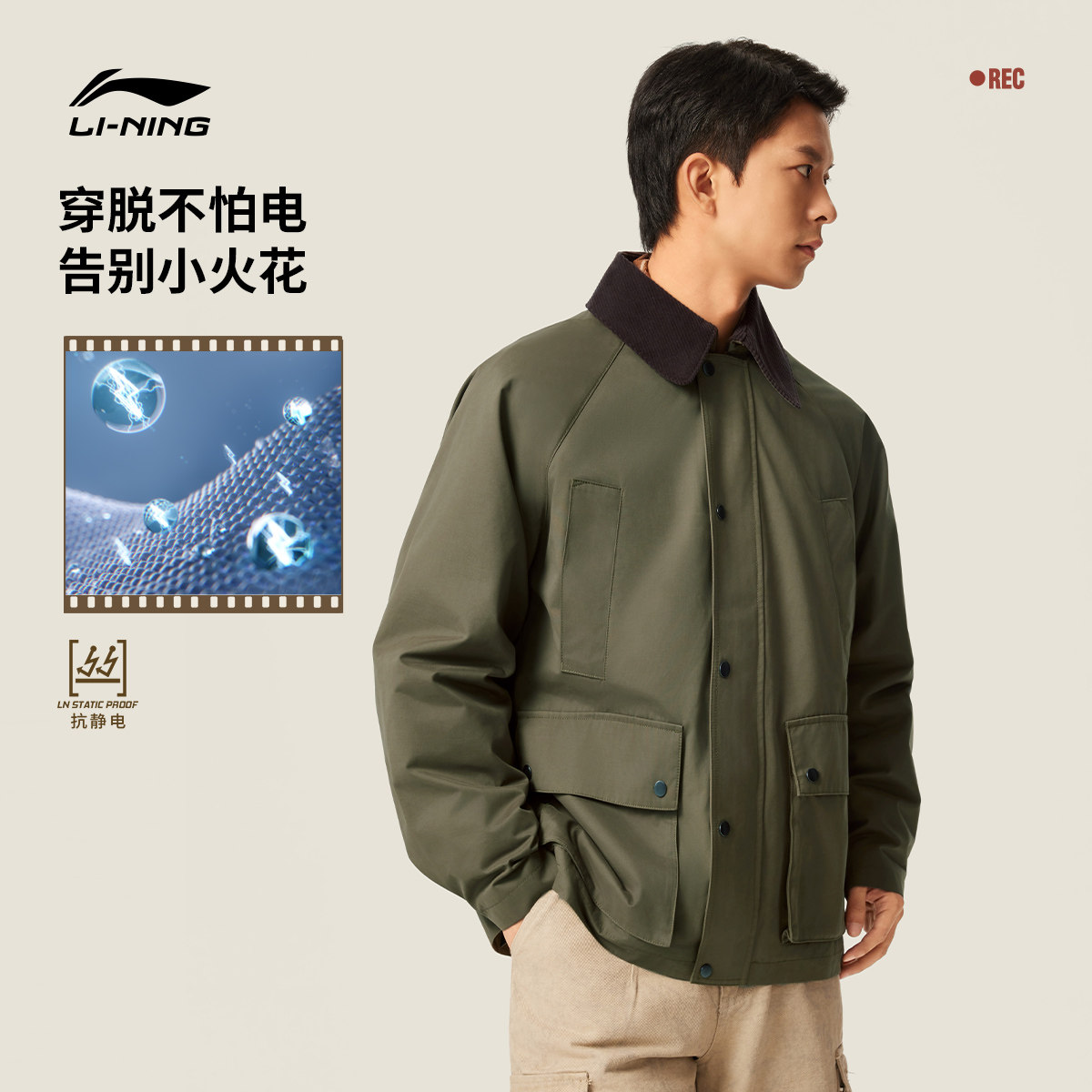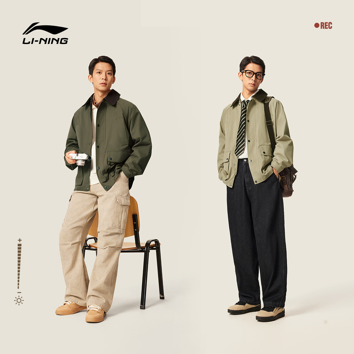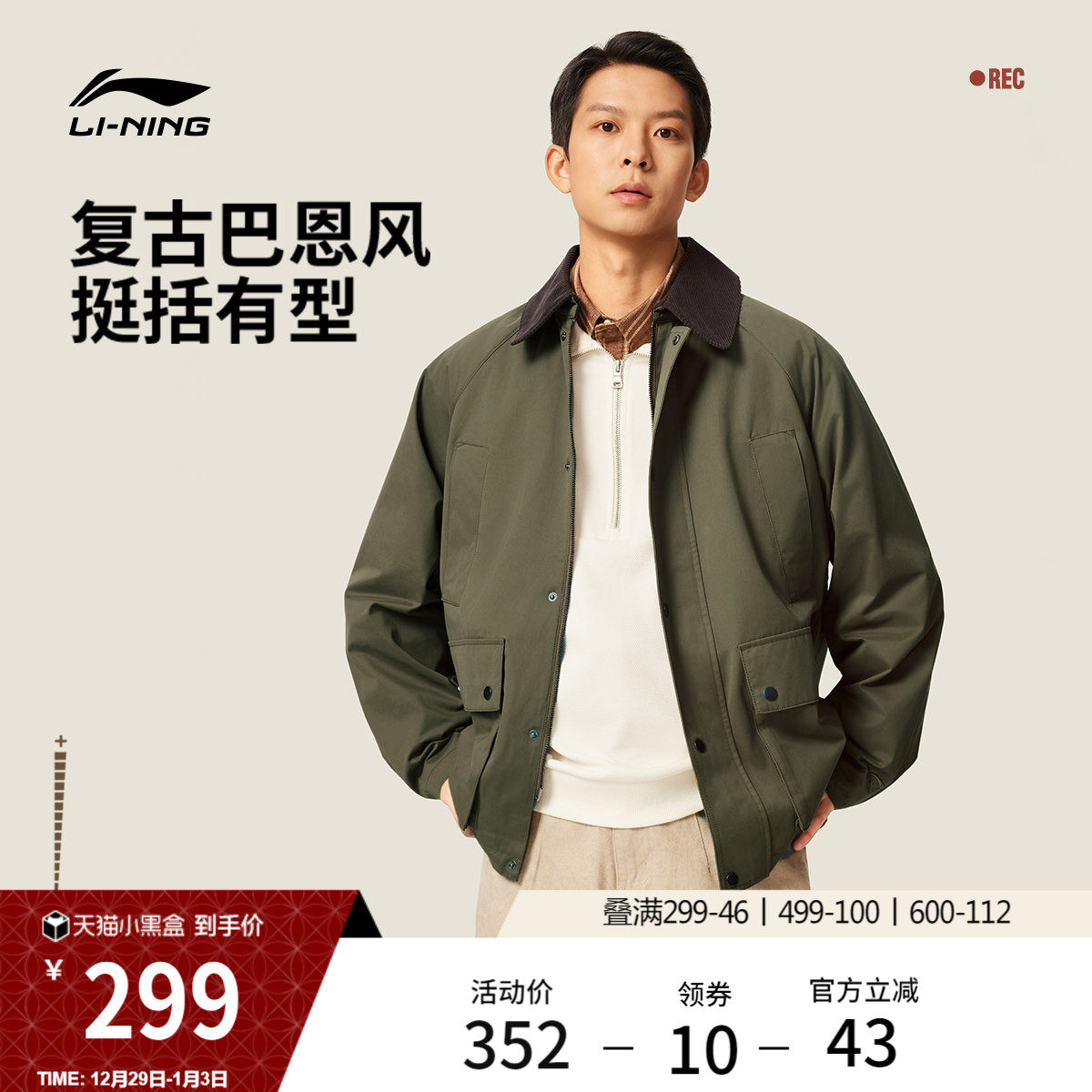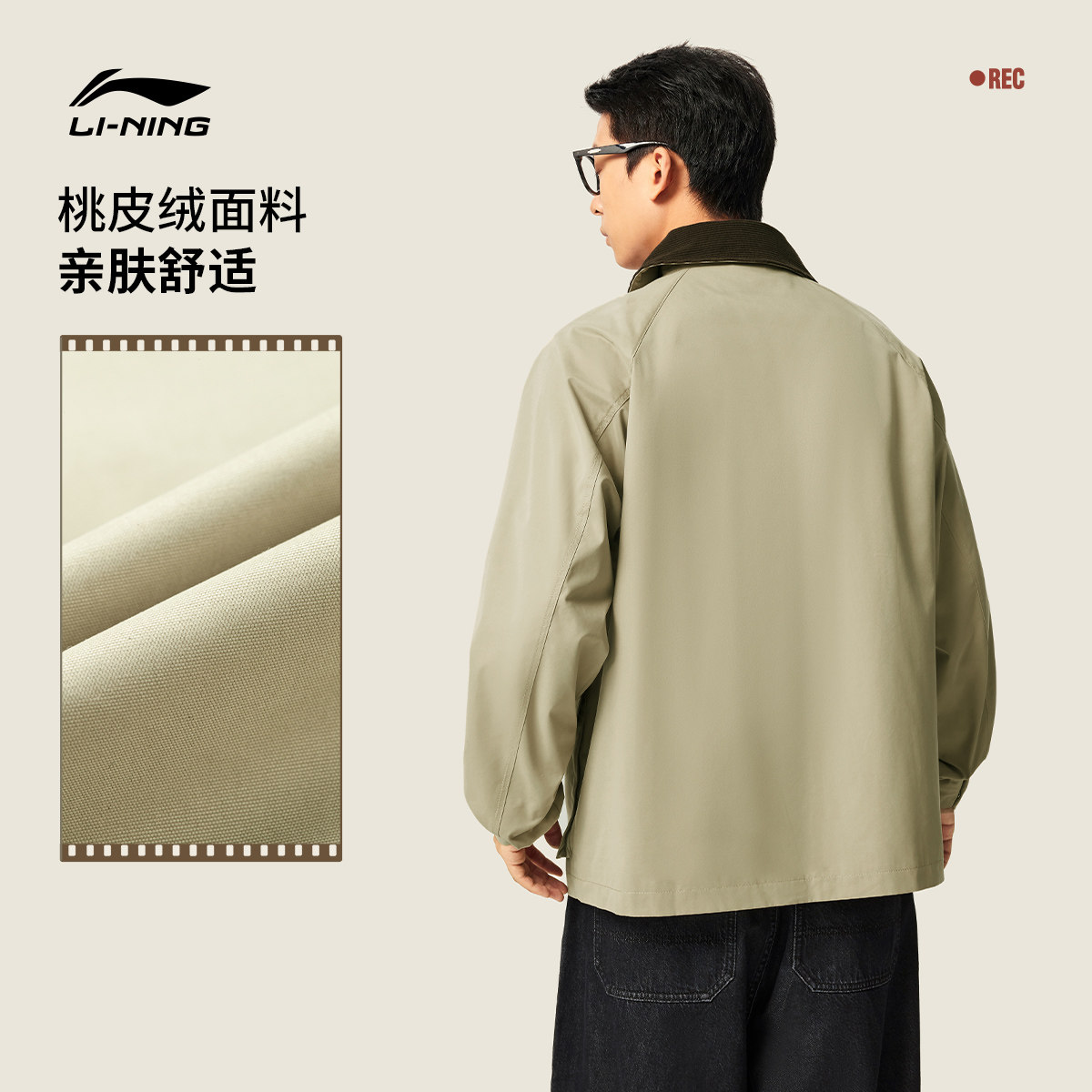 李宁哈灵顿夹克男秋冬新款翻领复古巴恩风梭织行政宽松运动外套