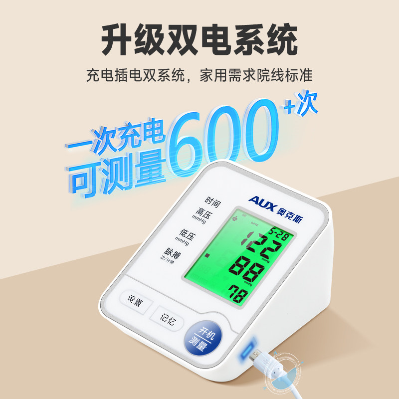 奥克斯电子血压计家用高精准医院专用充电臂式正品血压测量仪器表